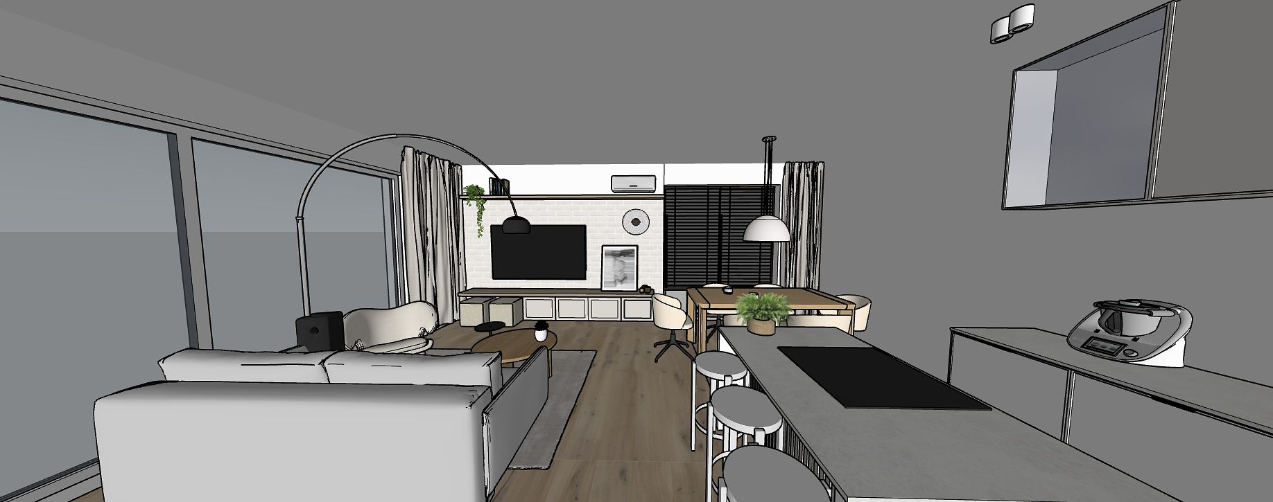 Wnętrze z jadalnią i przestronnym salonem