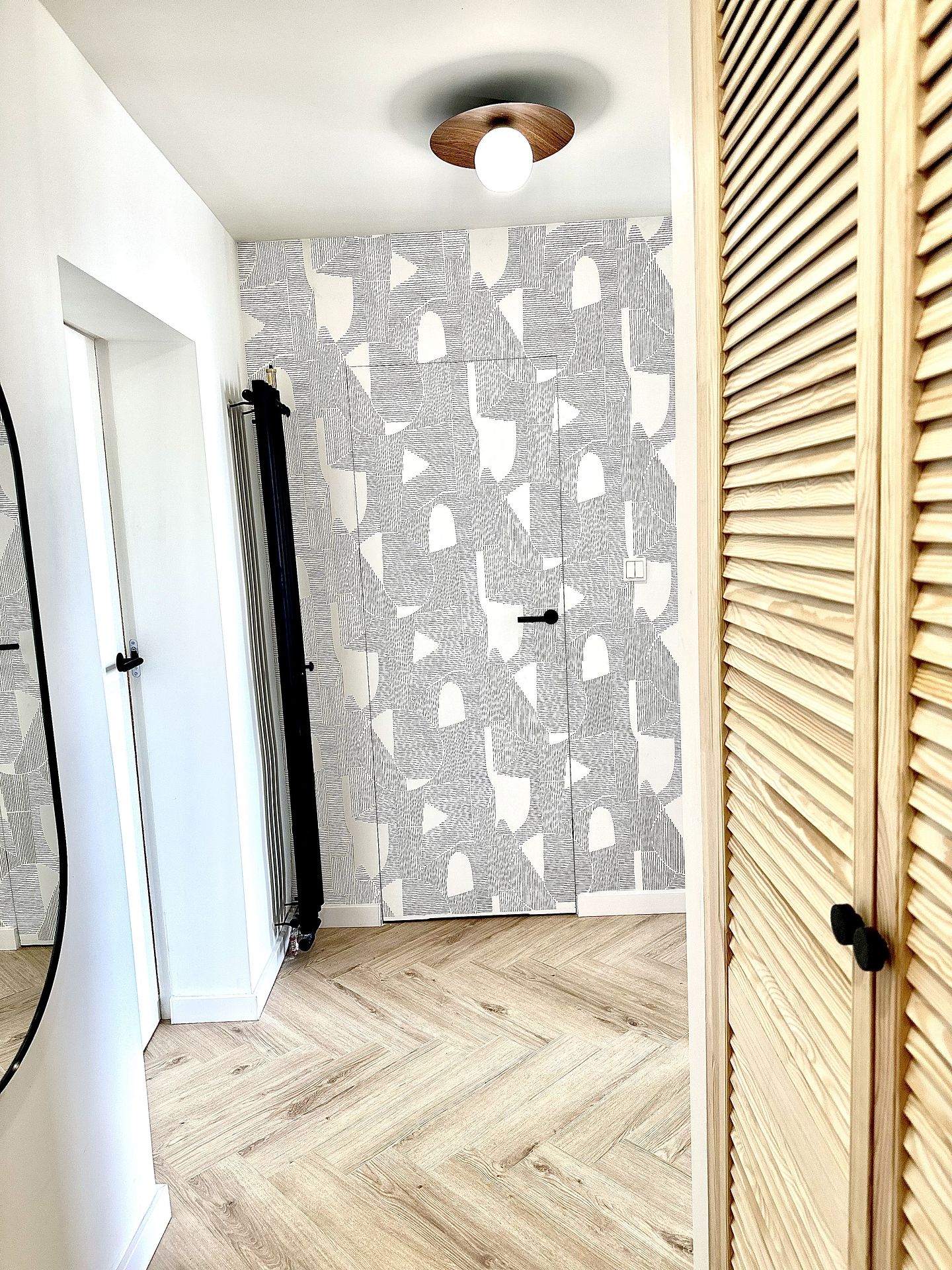 Przedpokój z jasnymi ścianami i drewnianą podłogą