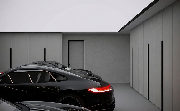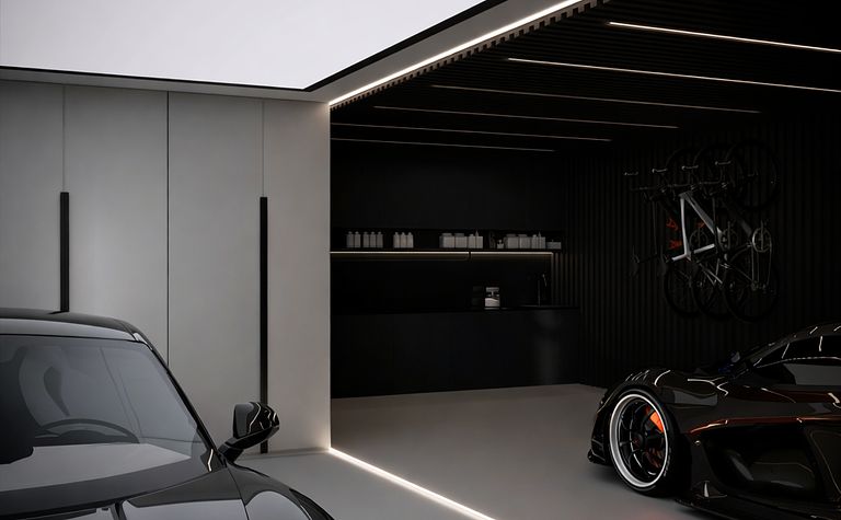 Garaż z dwoma samochodami i nowoczesnym oświetleniem