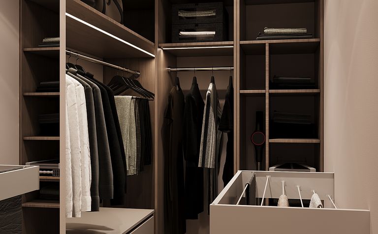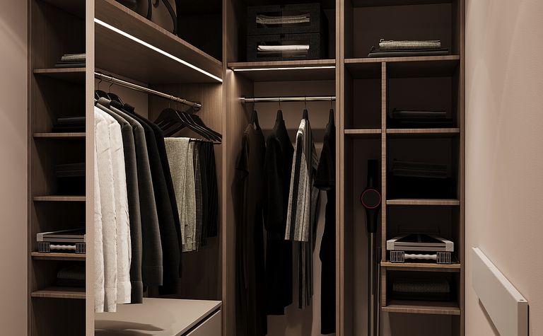 Garderoba z szafą i półkami na ubrania