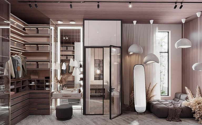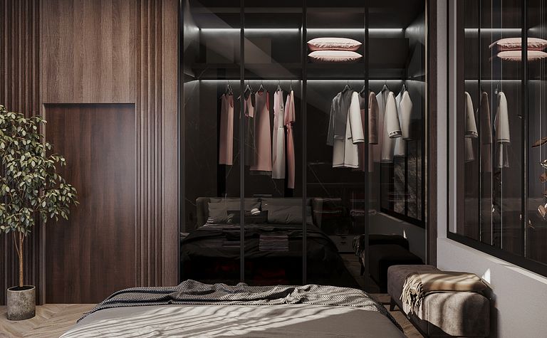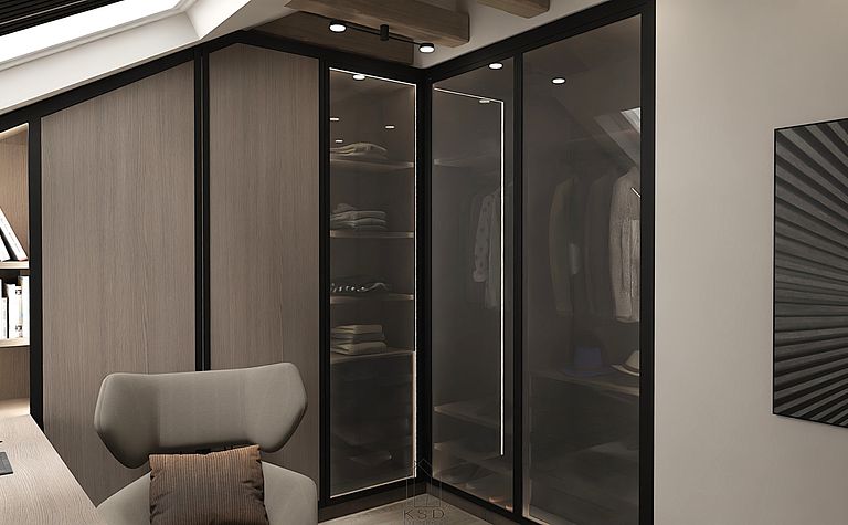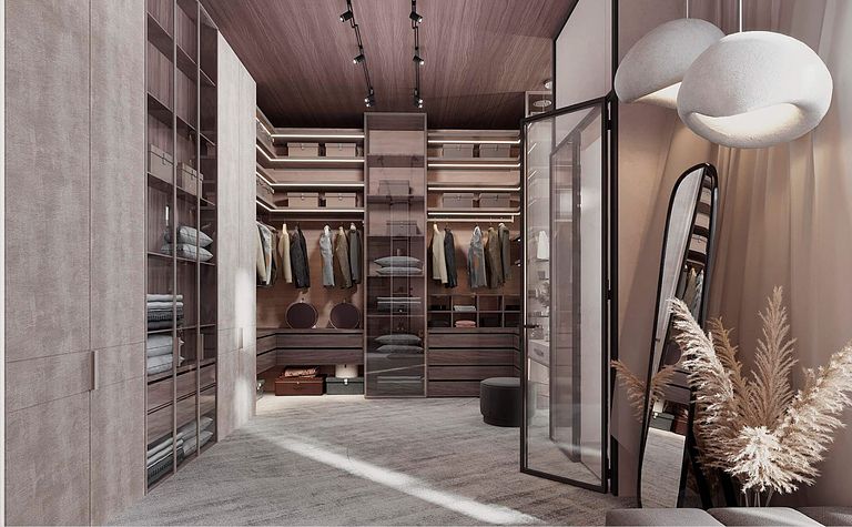 Garderoba z lustrami i przeszklonymi drzwiami