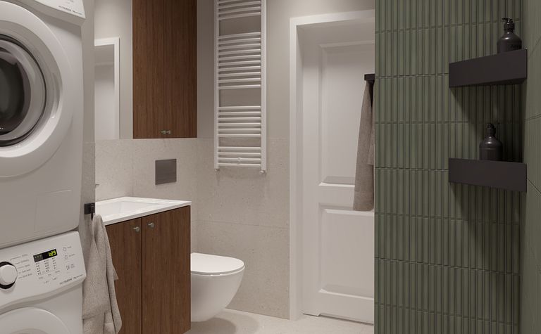 Łazienka z prysznicem i pralką