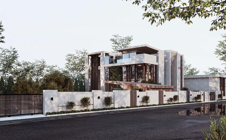 Nowoczesny dom z dużymi oknami i drewnianymi akcentami