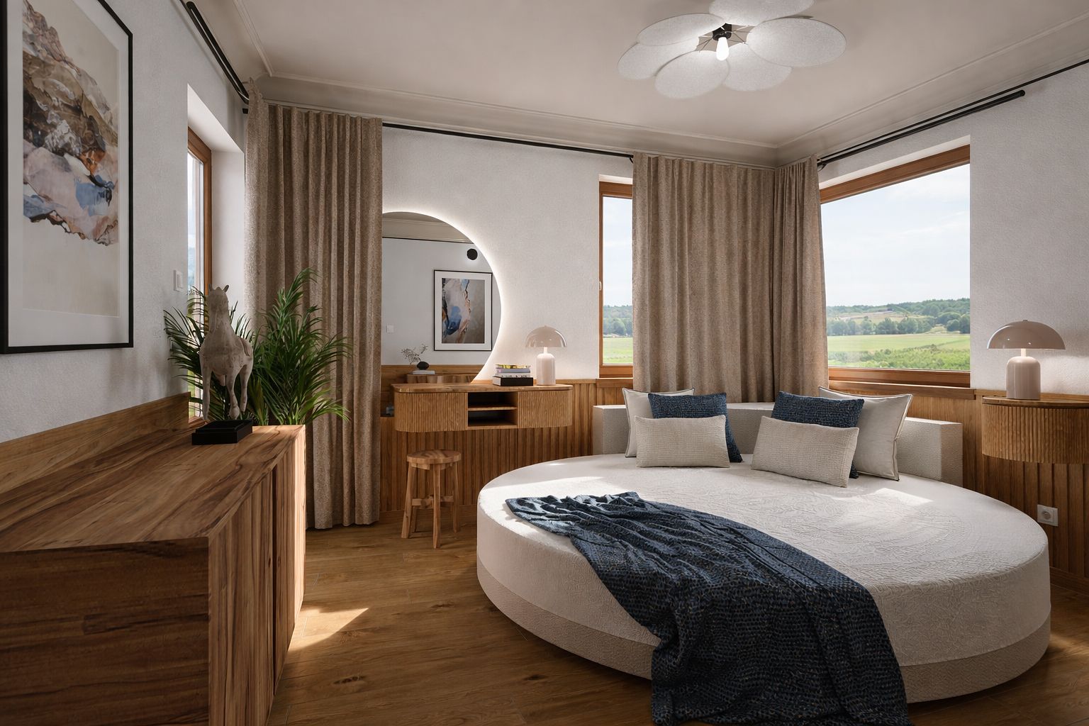 Sypialnia z okrągłym łóżkiem