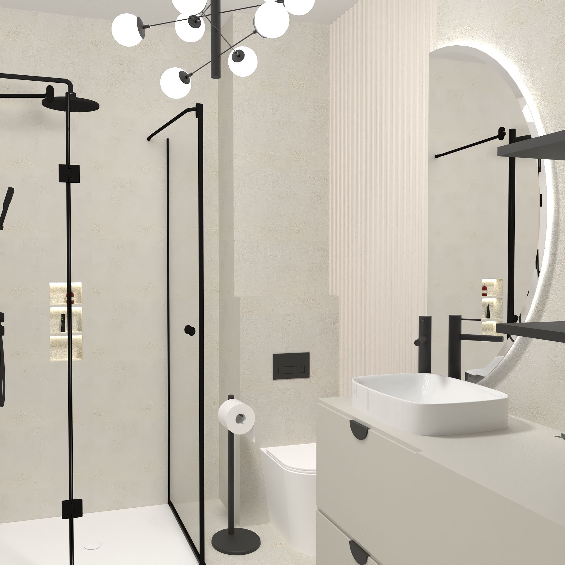 mieszkanie zakupione od dewelopera. przesunięte kontakty, dodane światła. Część mebli na wymiar, część z sklepów internetowych