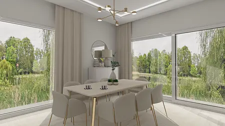 Dom wolnostojący za miastem. Przestrzeń dla rodziny, stworzona z myślą o potrzebach i będąca realizacją marzeń inwestorów. Glamour, ale subtelnie. Elegancko, ale praktycznie. Jasno i delikatnie jest wszędzie, a to najlepsze otoczenie dla dobrych emocji.