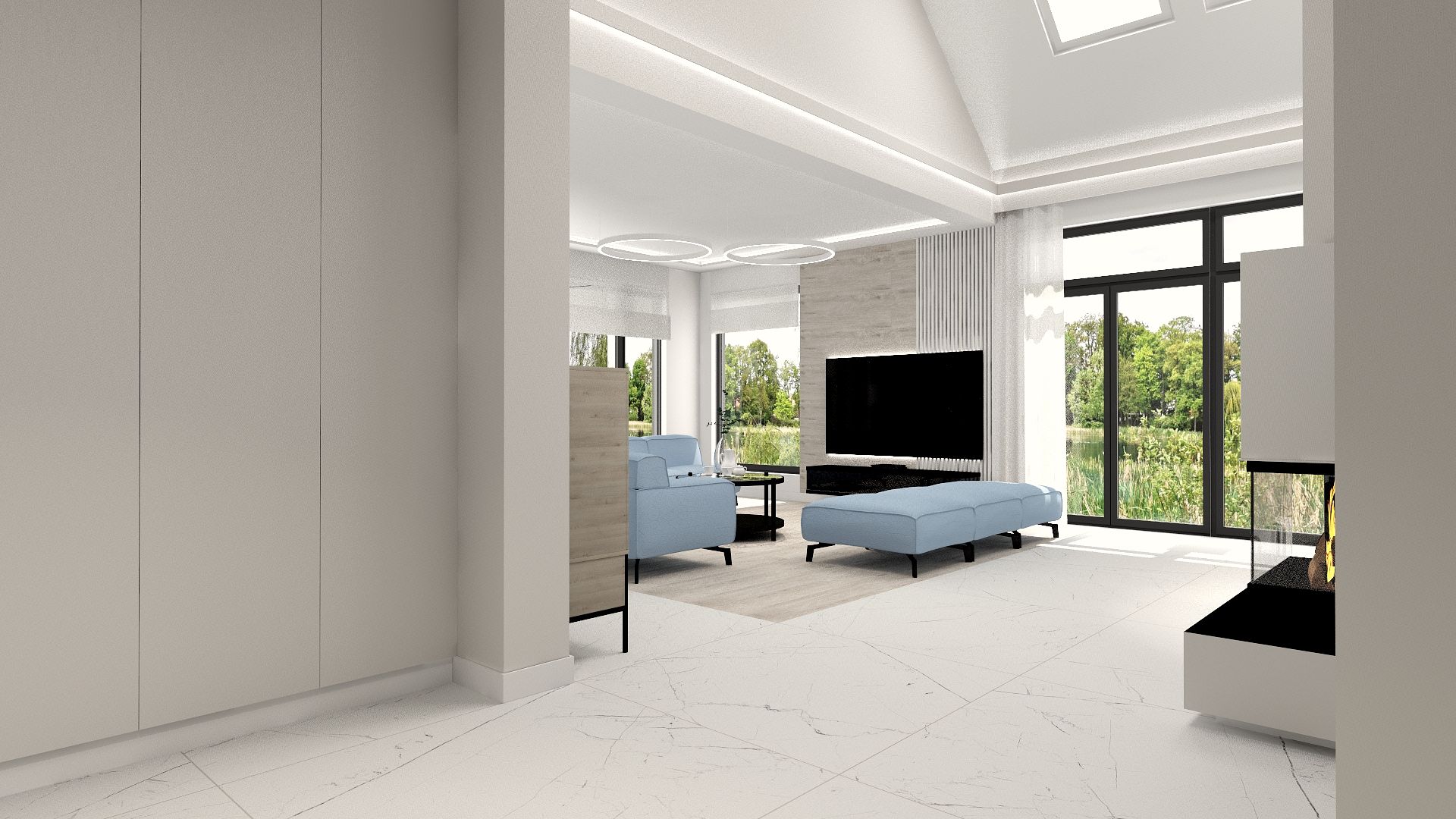 Projekt wnętrza domu wolnostojącego. Remont domu to zawsze wielkie wyzwanie, tak było i tym razem. Imponujące przestrzenie i duże przeszklenia, nowe instalacje i okładziny dobrane według szczególnych potrzeb inwestorów. Projekt pomógł w podejmowaniu najważniejszych decyzji dotyczących zaaranżowania przestrzeni i w doborze materiałów.