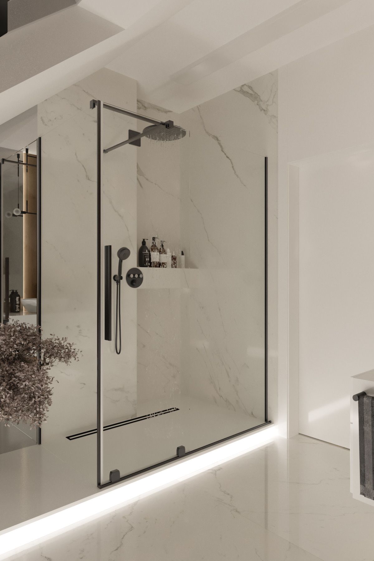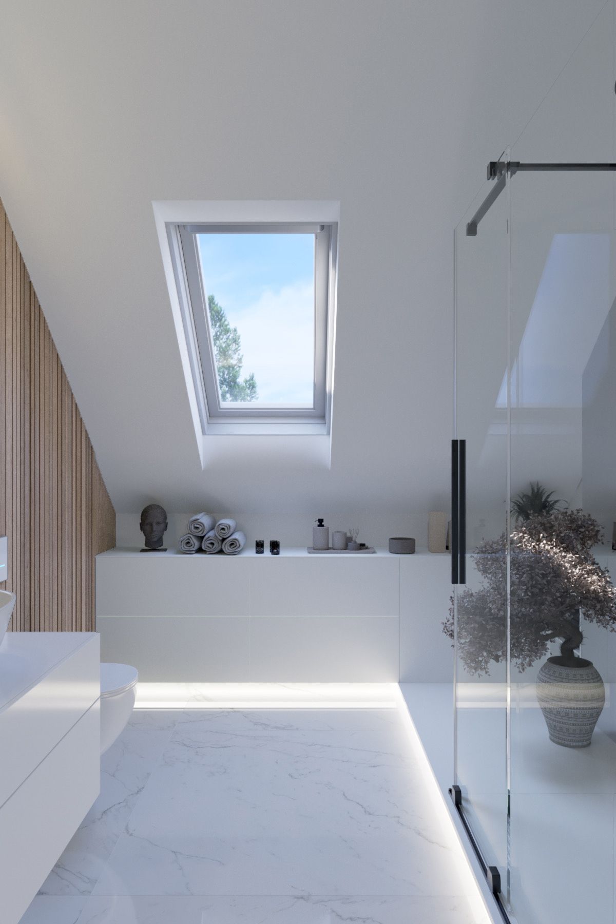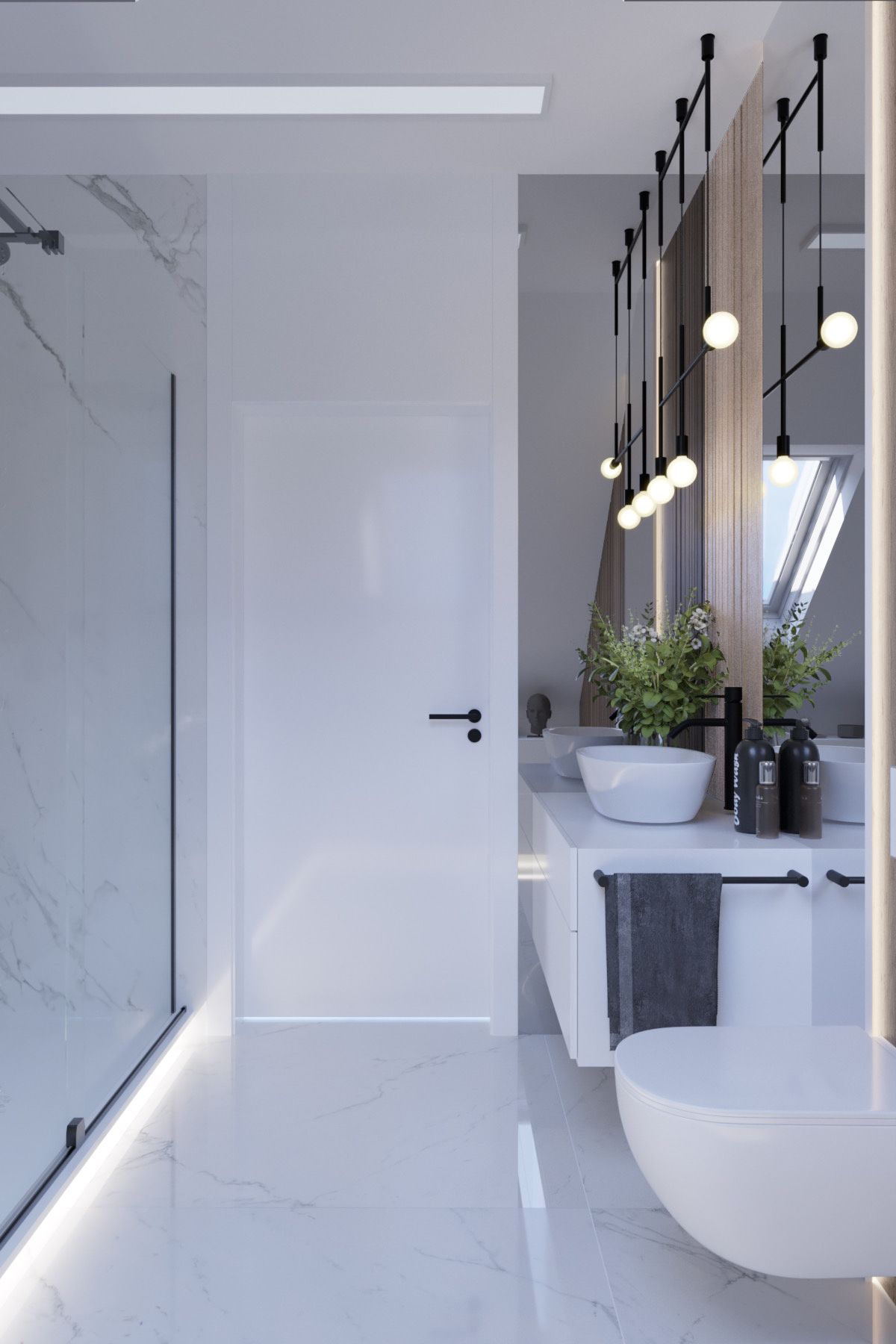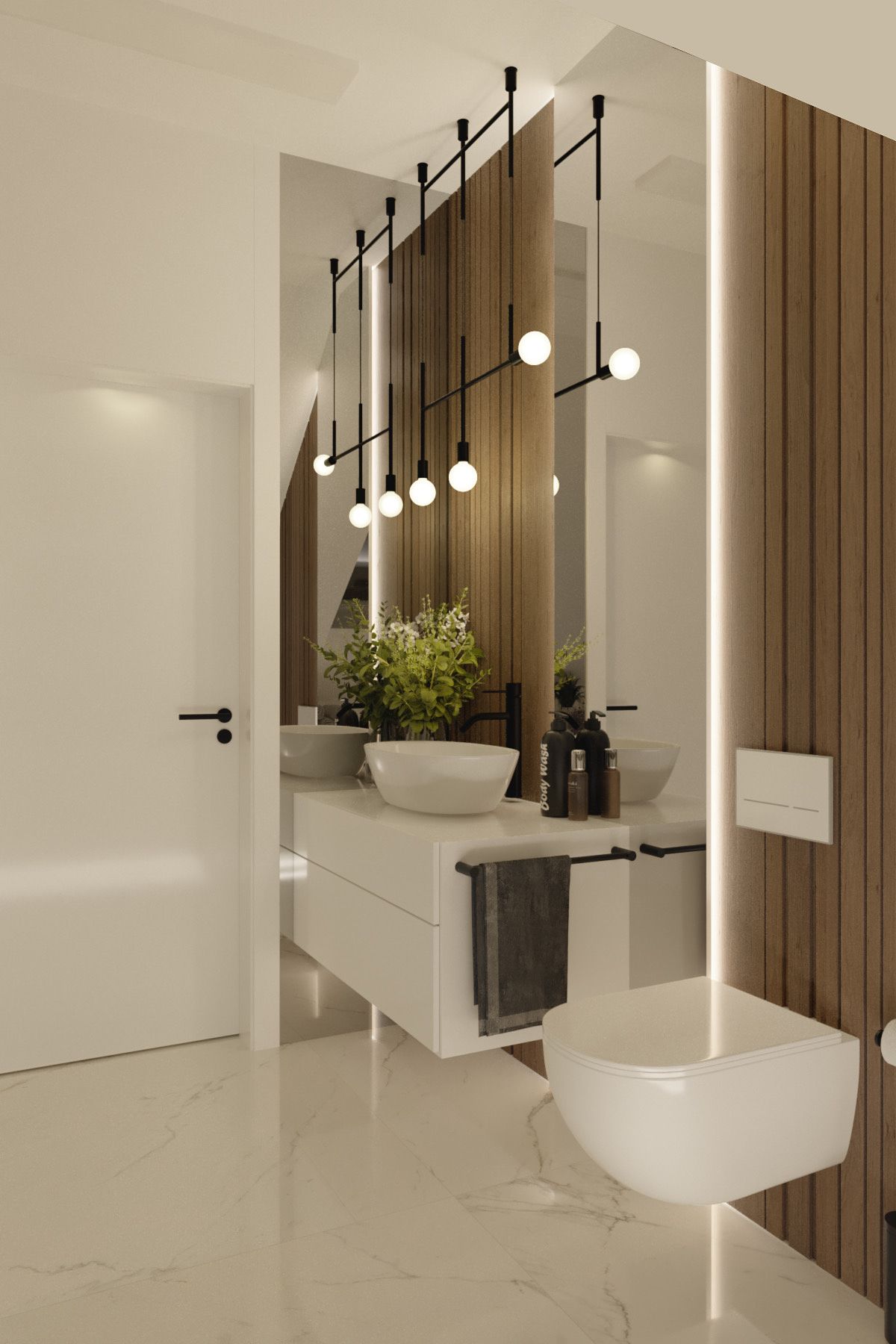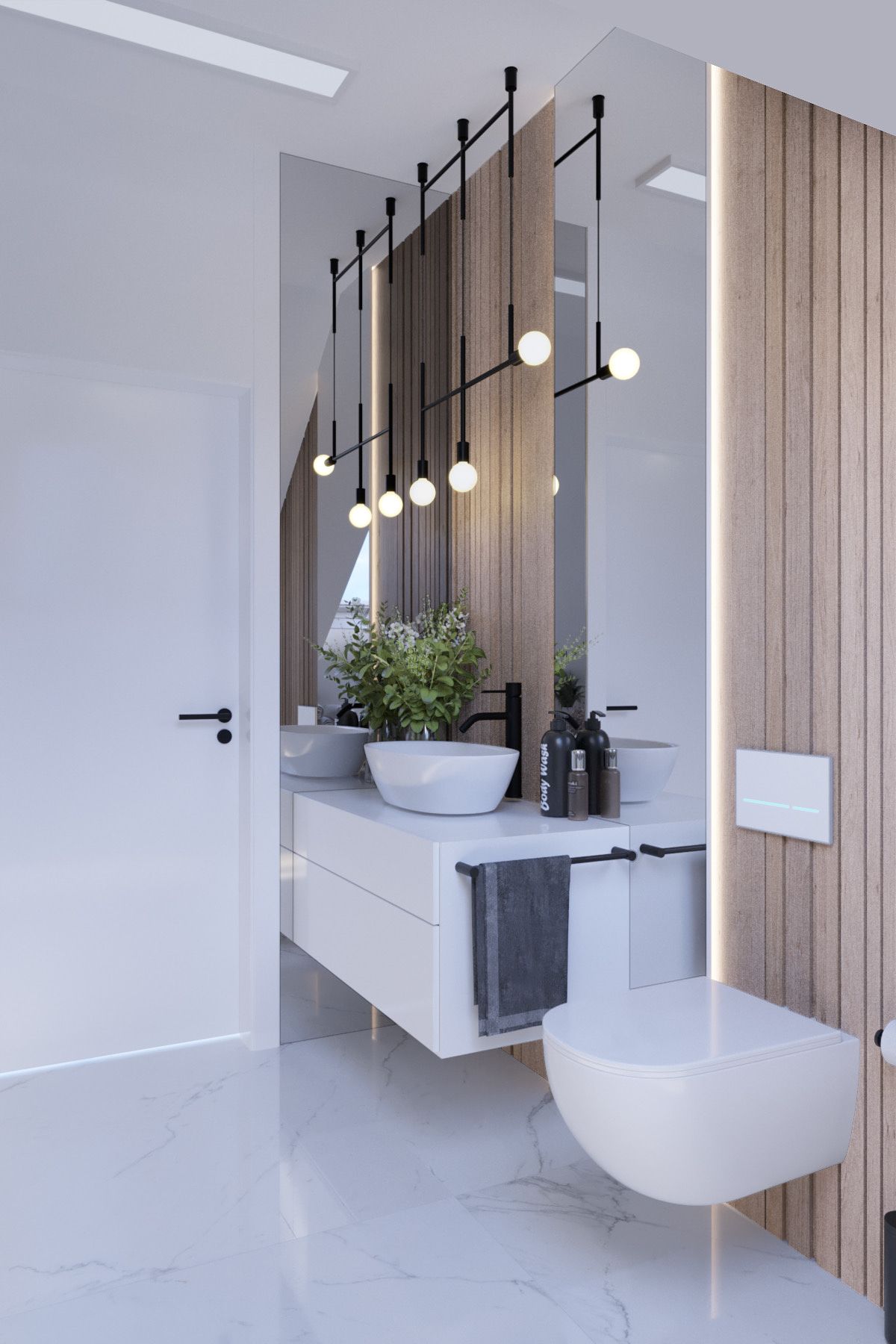 Odkryj magię połączenia stylów w łazience, gdzie zimny połysk współgra z ciepłem naturalnego drewna. Ponadczasowe kolory tworzą eleganckie i harmonijne wnętrze, idealne do relaksu i odprężenia. Strefy kąpielowe i kątowe umywalki zapewniają funkcjonalność, a duże lustra powiększają przestrzeń, dodając lekkości i nowoczesnego charakteru.