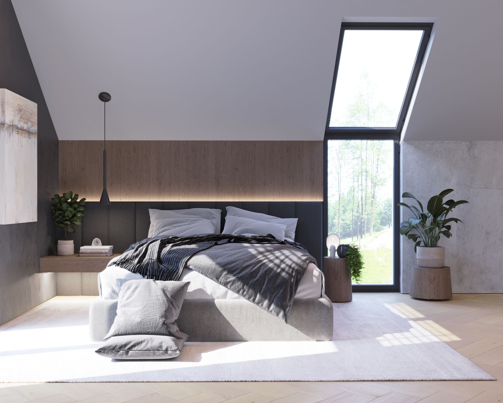 Styl minimalistyczny spotyka się z naturalnymi akcentami w moim najnowszym projekcie aranżacji pokoju młodego mężczyzny. Czystość i prostota sprawiają, że wnętrze jest miejscem pełnym spokoju i harmonii. A wszystko to w przestronnym pokoju na poddaszu w jednorodzinnym domu.