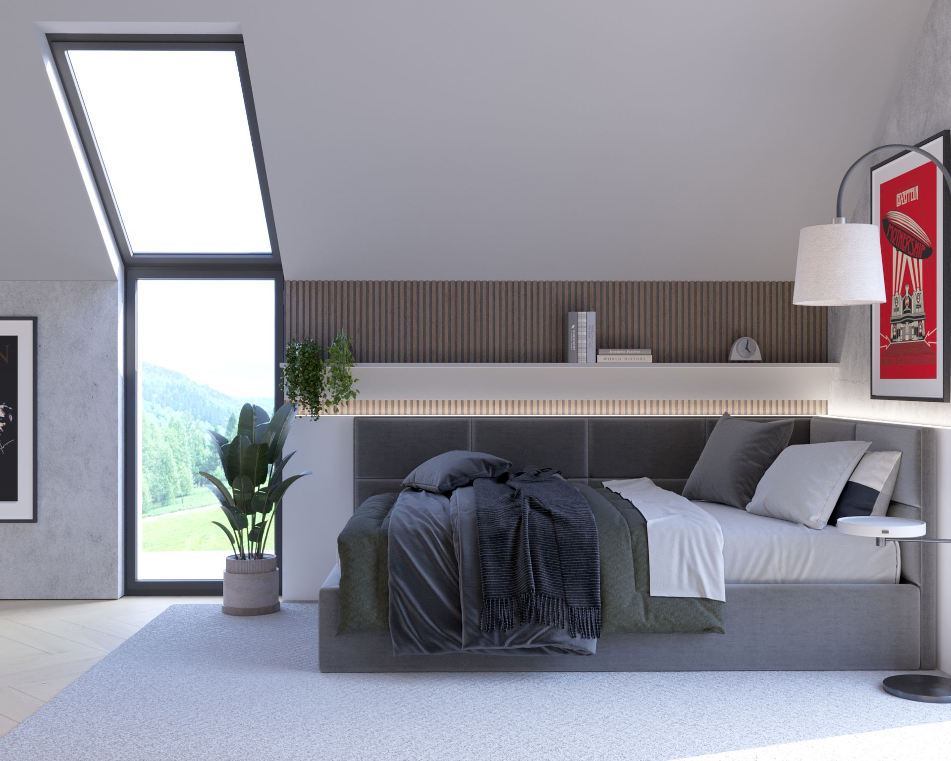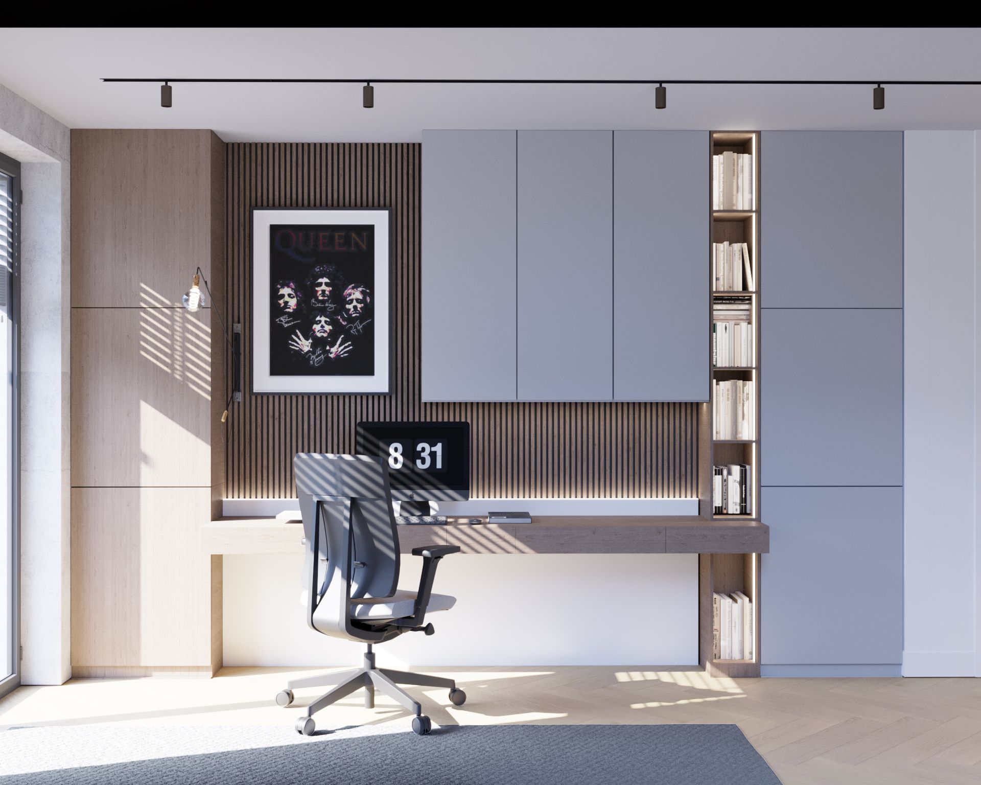 Pokój dla nietypowego nastolatka, który dokładnie wie co się mu podoba i z czym czuje się najlepiej. Projektowanie tego pokoju to była czysta przyjemność. Wytyczne młodego nastolatka jasne i klarowne. Wydzielone strefy do nauki, odpoczynku i ogrom przechowywania. Minimalistyczne oświetlenie.