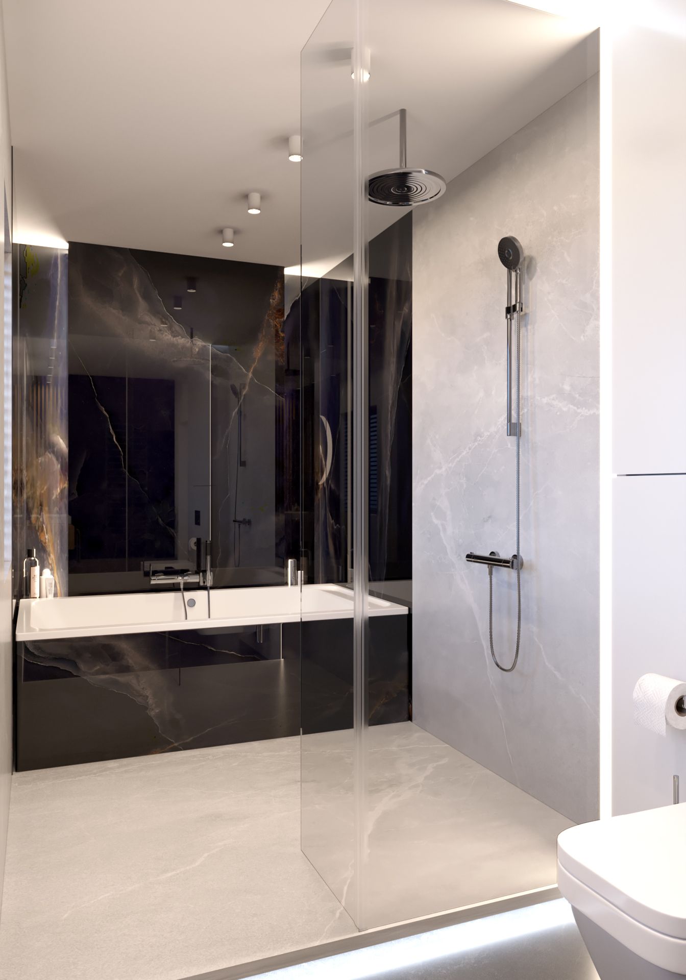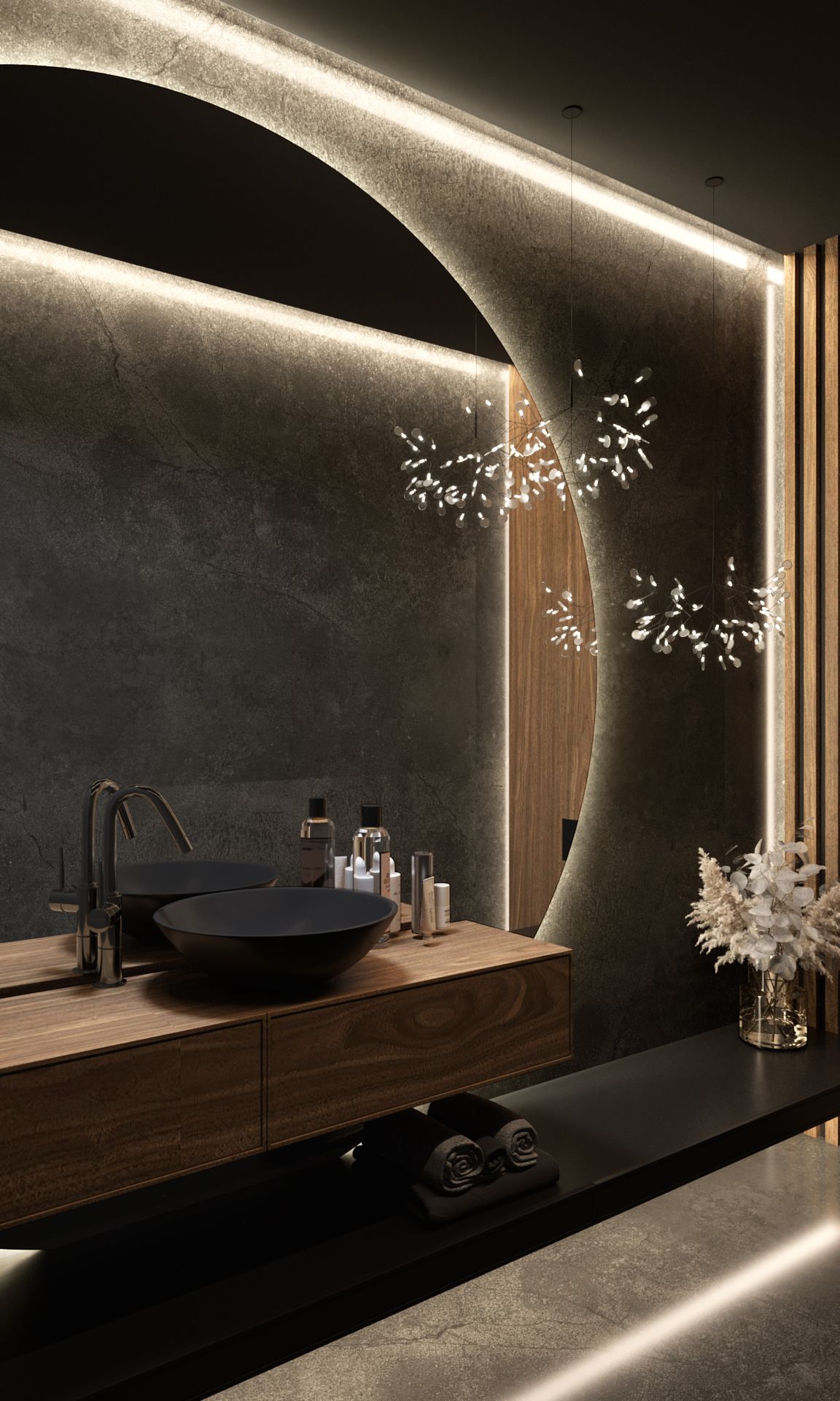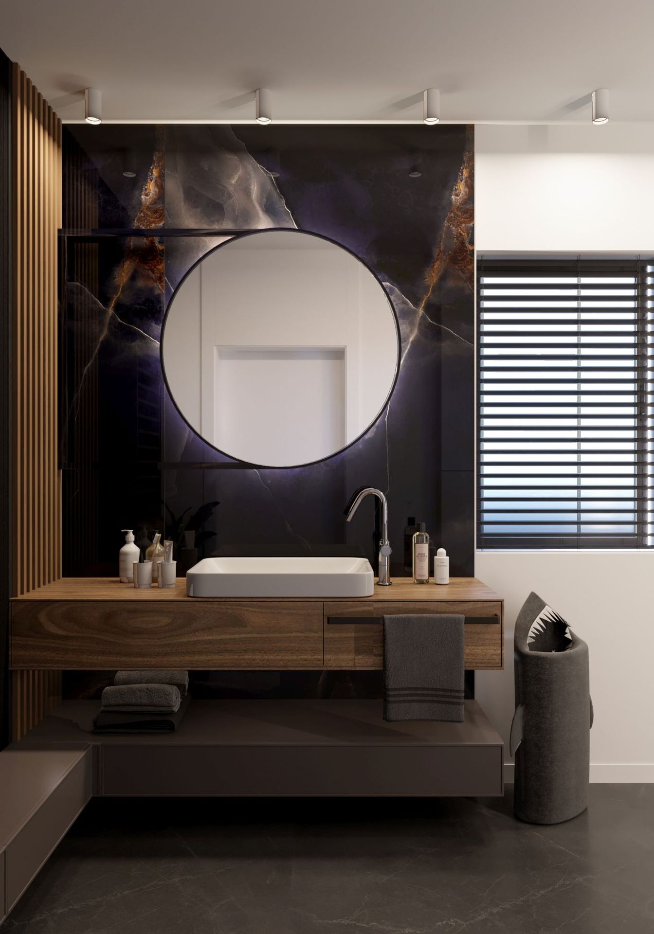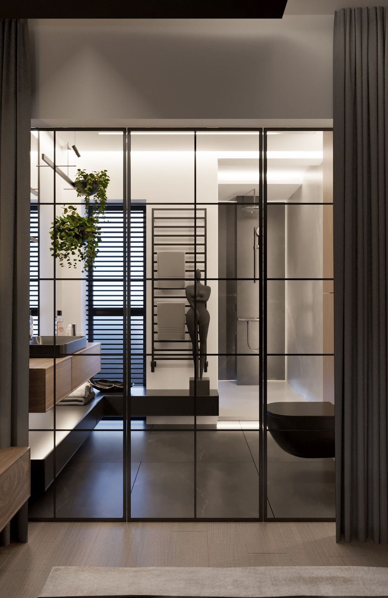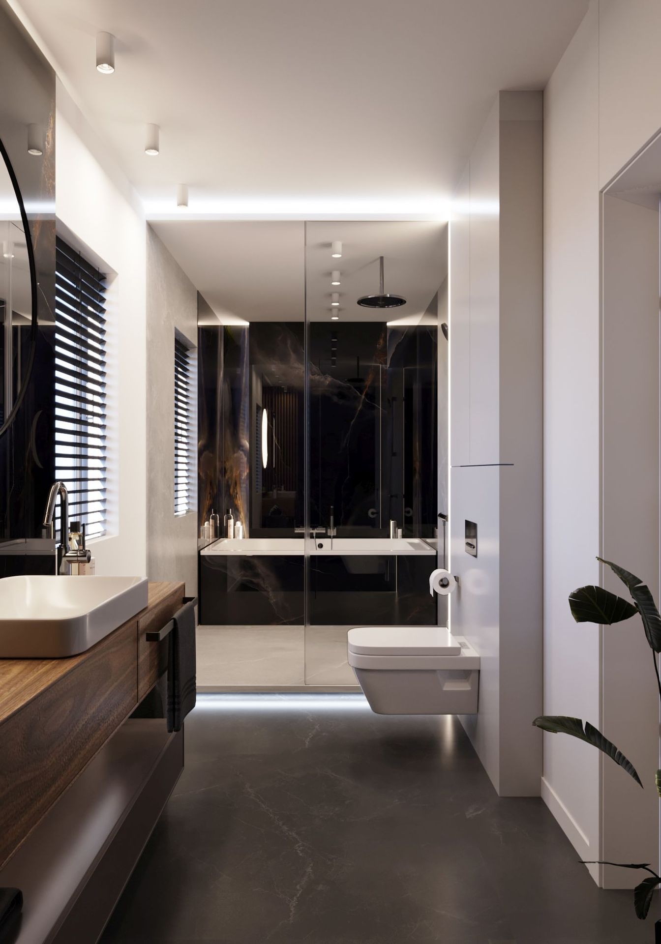 Oh! Ten projekt przeszedł moje najśmielsze oczekiwania. Dom z zewnątrz niepozorny, którego wnętrza oszałamiały przestronnością. W pierwszej odsłonie łazienka przy sypialni master oraz łazienka główna. W projekcie wykorzystałam płyty wielkoformatowe, meble fornirowane, industrialne przeszklenia. Najważniejsza dla inwestorów była funkcjonalność oraz dobra jakość wykorzystanych materiałów. Udało się to wszystko ubrać w piękny design.