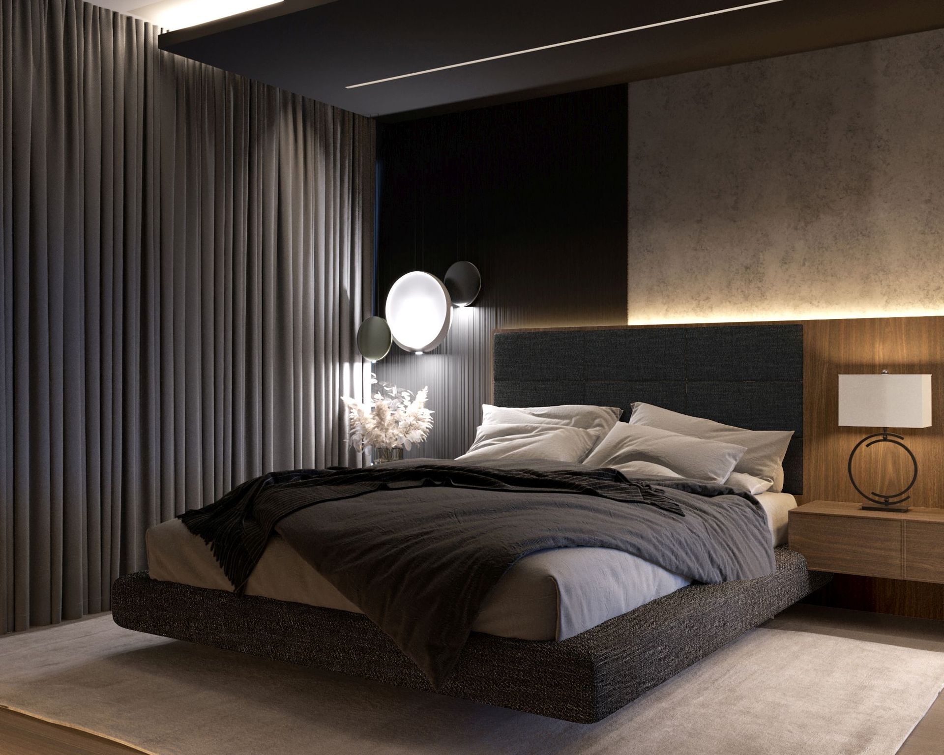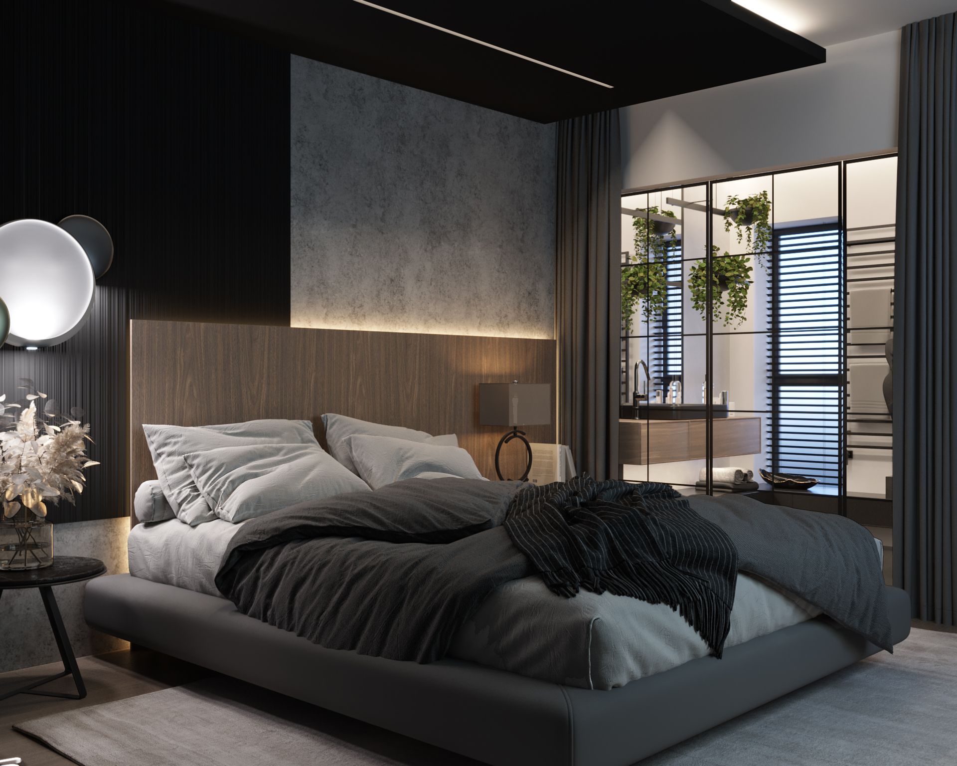 Kontynuacja projektu domu w Starym Sączu - Sypialnia master. Zaprojektowana dla komfortu, odpoczynku i dobrego snu. Inwestorzy, którzy nie boją się mocnych akcentów, którzy fantastycznie czują się w charakternych przestrzeniach. Całość łączy elegancję, luksus i daje poczucie otulenia.