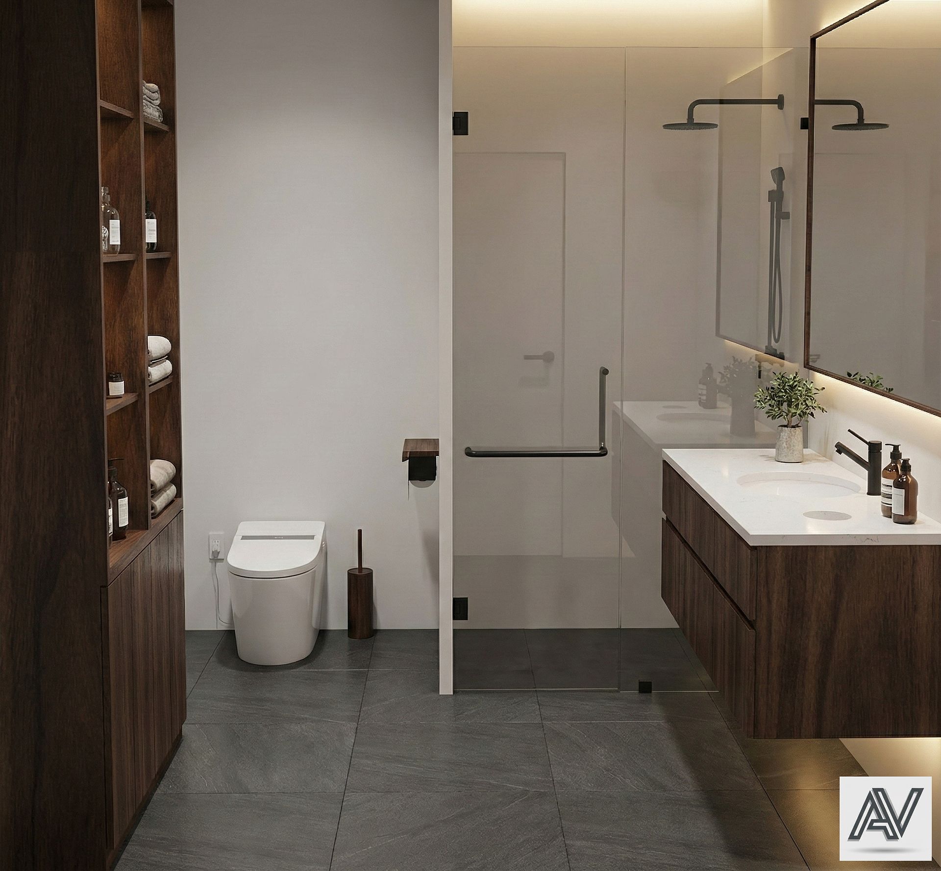Budujemy model 3D na bazie zaakceptowanego rzutu 2D. Dobieramy konkretne materiały, kolory, meble i oświetlenie.