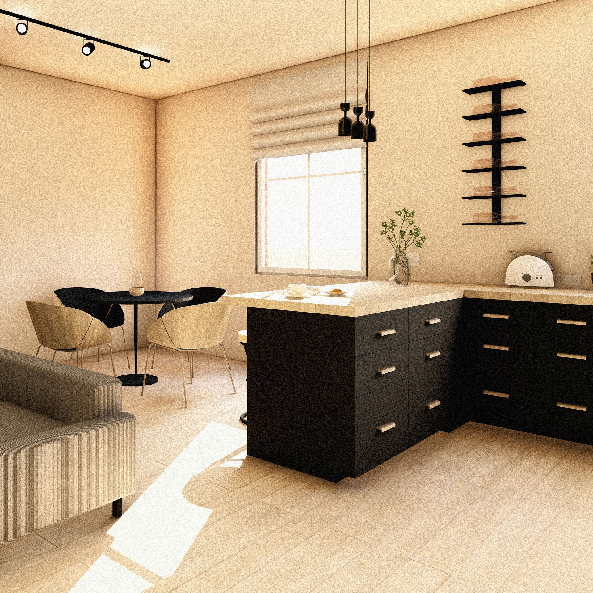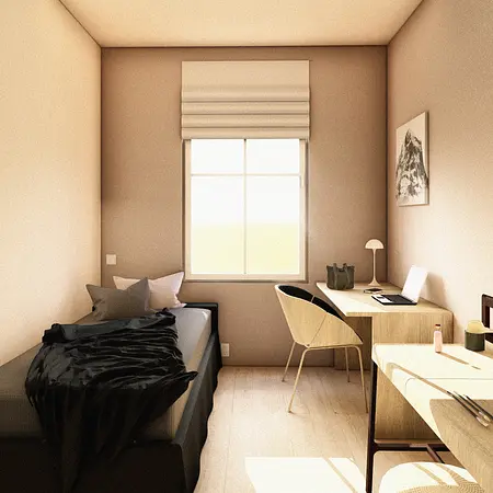 Mieszkanie w Bytomiu / Śląskie Realizacja 2026 Mieszkanie w stylu loftowym zlokalizowane w centrum Bytomia, w kamienicy z przełomu XIX i XX wieku. Wnętrze o powierzchni 75,5 m² obejmuje łazienkę, hol, dwa pokoje oraz otwartą kuchnię połączoną z salonem. Charakter wnętrza podkreślają wysokie sufity oraz duże okna, gwarantujące obfitość naturalnego światła. Projekt opiera się na połączeniu surowych materiałów z nowoczesnymi, oszczędnymi w formie meblami, tworząc harmonijną i ponadczasową przestrzeń z wyraźnym loftowym wyrazem.