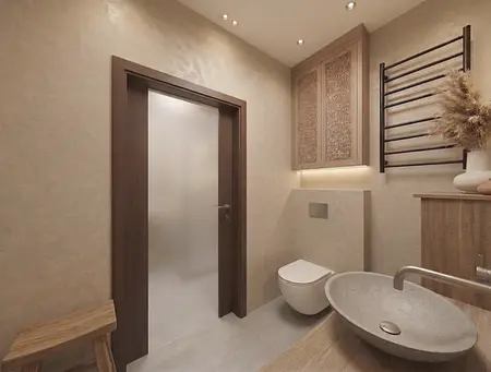 Projekt łazienki w stylu domowe SPA to koncepcja skupiona na wyciszeniu i bliskości z naturą, realizowana poprzez zastosowanie szlachetnych, rzemieślniczych wykończeń.