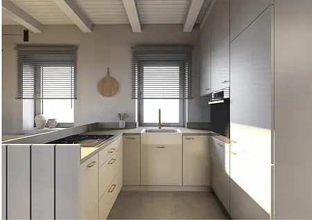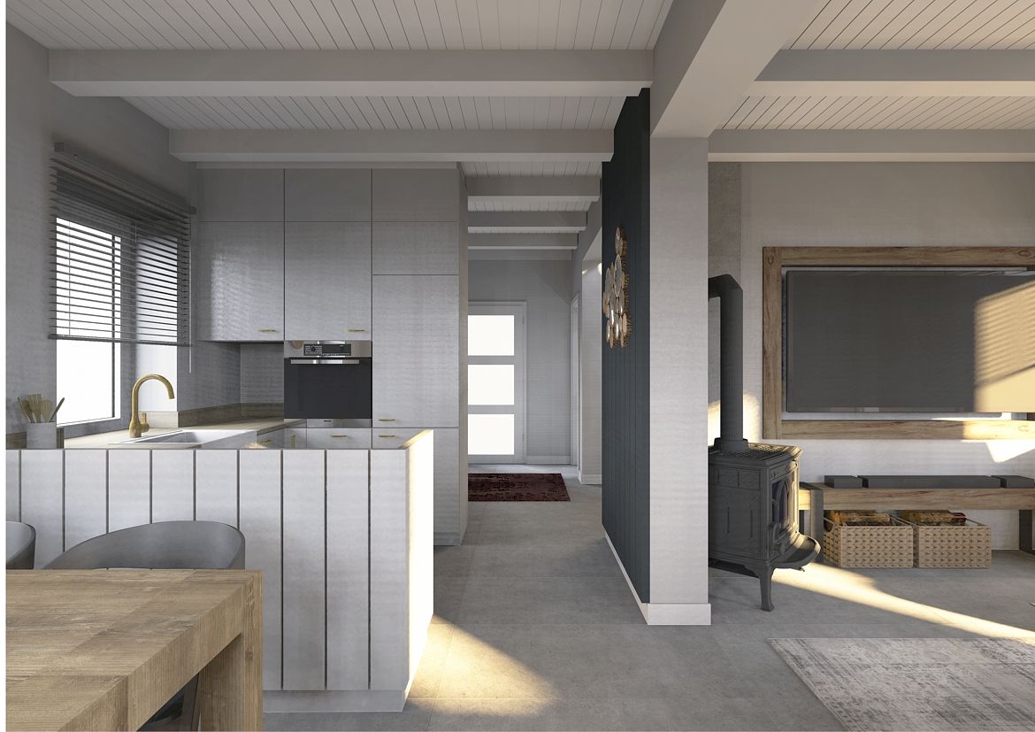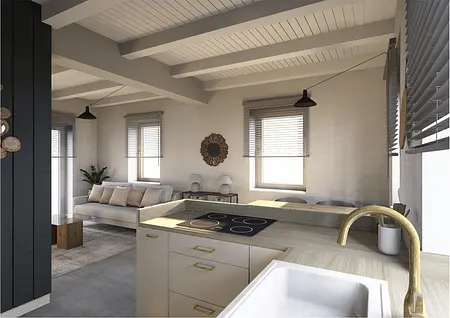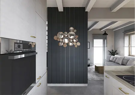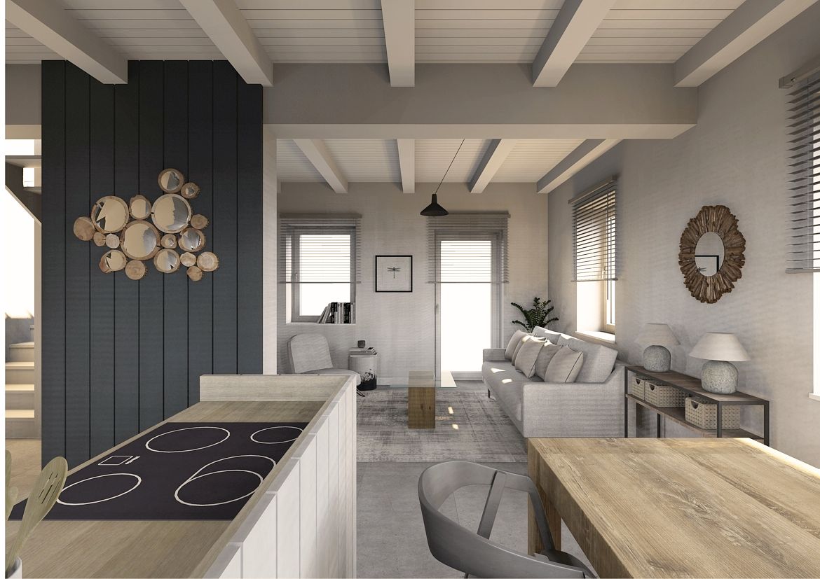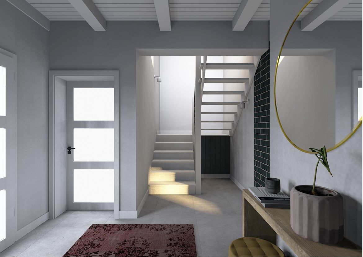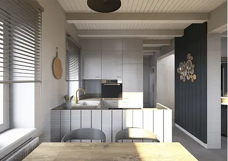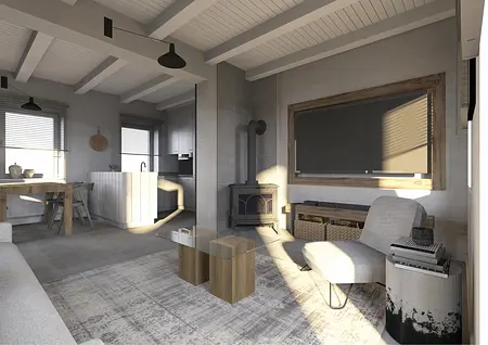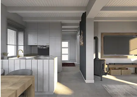 Projekt domu na wsi to współczesna interpretacja wiejskiej sielanki, gdzie surowość drewna z odzysku spotyka się z czystą formą nowoczesności, tworząc azyl pełen ciepła i autentyczności. Kluczowe elementy koncepcji: Drewno z historią: Wykorzystanie starego drewna z odzysku na belkach stropowych lub jako akcenty ścienne, co nadaje wnętrzu duszę i niepowtarzalną fakturę. Nowoczesna kuchnia w drewnie: Połączenie minimalistycznych brył z ciemnymi drewnianymi panelami, które przełamują nowoczesny chłód i wprowadzają luksusowy, a zarazem przytulny klimat. Bogactwo struktur: Wnętrze bazuje na kontraście materiałów – od gładkich powierzchni po wyraźne sploty naturalnych tkanin (len, wełna), plecionki oraz strukturalne tynki. Ciepło i atmosfera: Projekt skupia się na stworzeniu „otulającej” przestrzeni dzięki warstwowemu oświetleniu, miękkim tekstyliom i naturalnej palecie barw ziemi. W skrócie: To harmonijne połączenie nowoczesnego komfortu z rustykalnym dziedzictwem, w którym dominują na