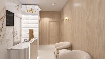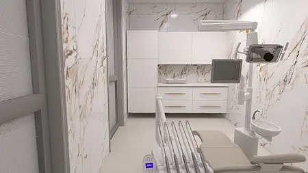 Klinika stomatologiczna, w ciepłych i przytulnych kolorach z zachowaniem czystości i standartów medycznych