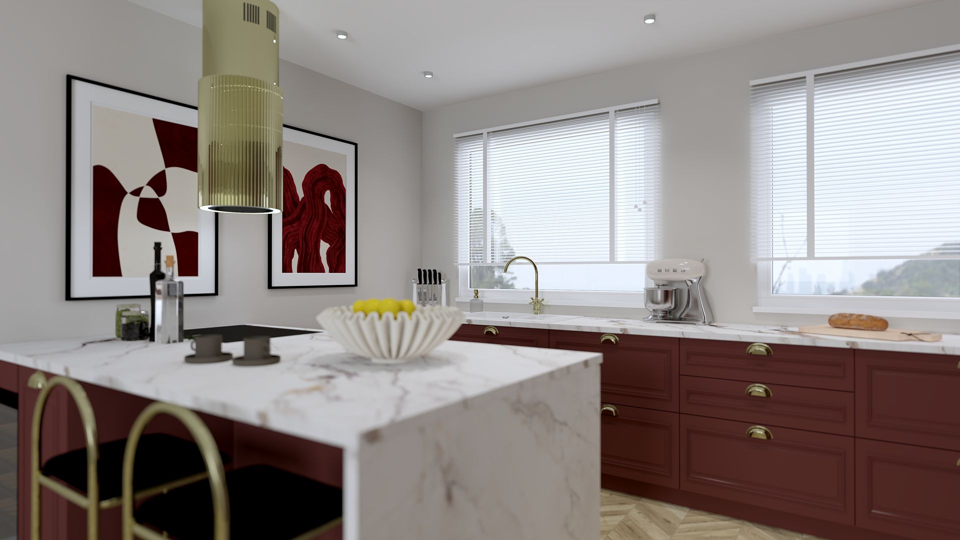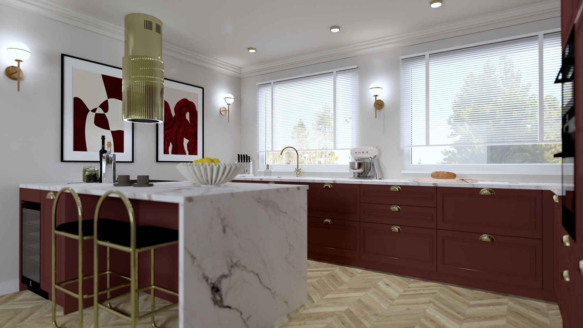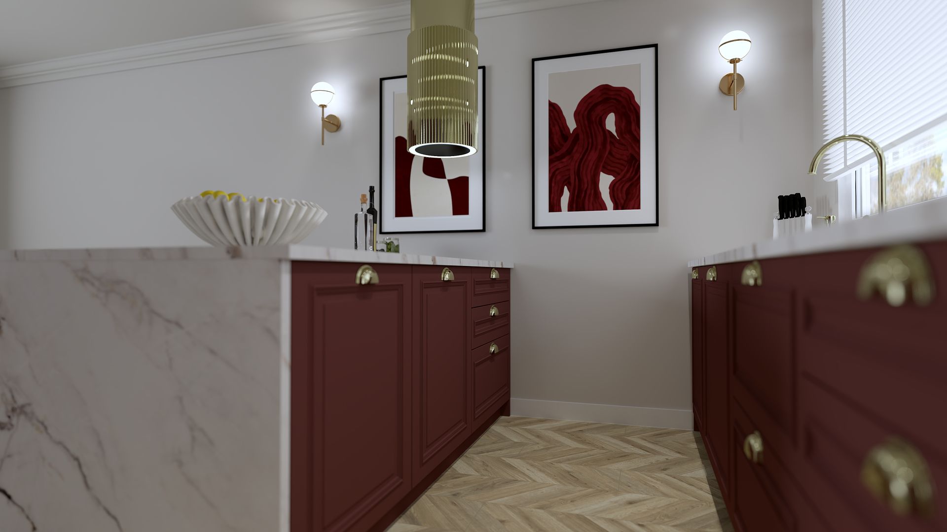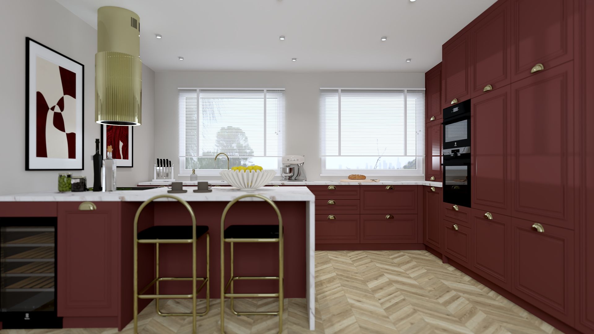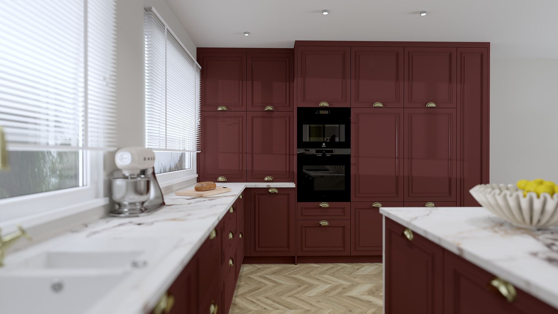 Kuchnia w burgundowych odcieniach