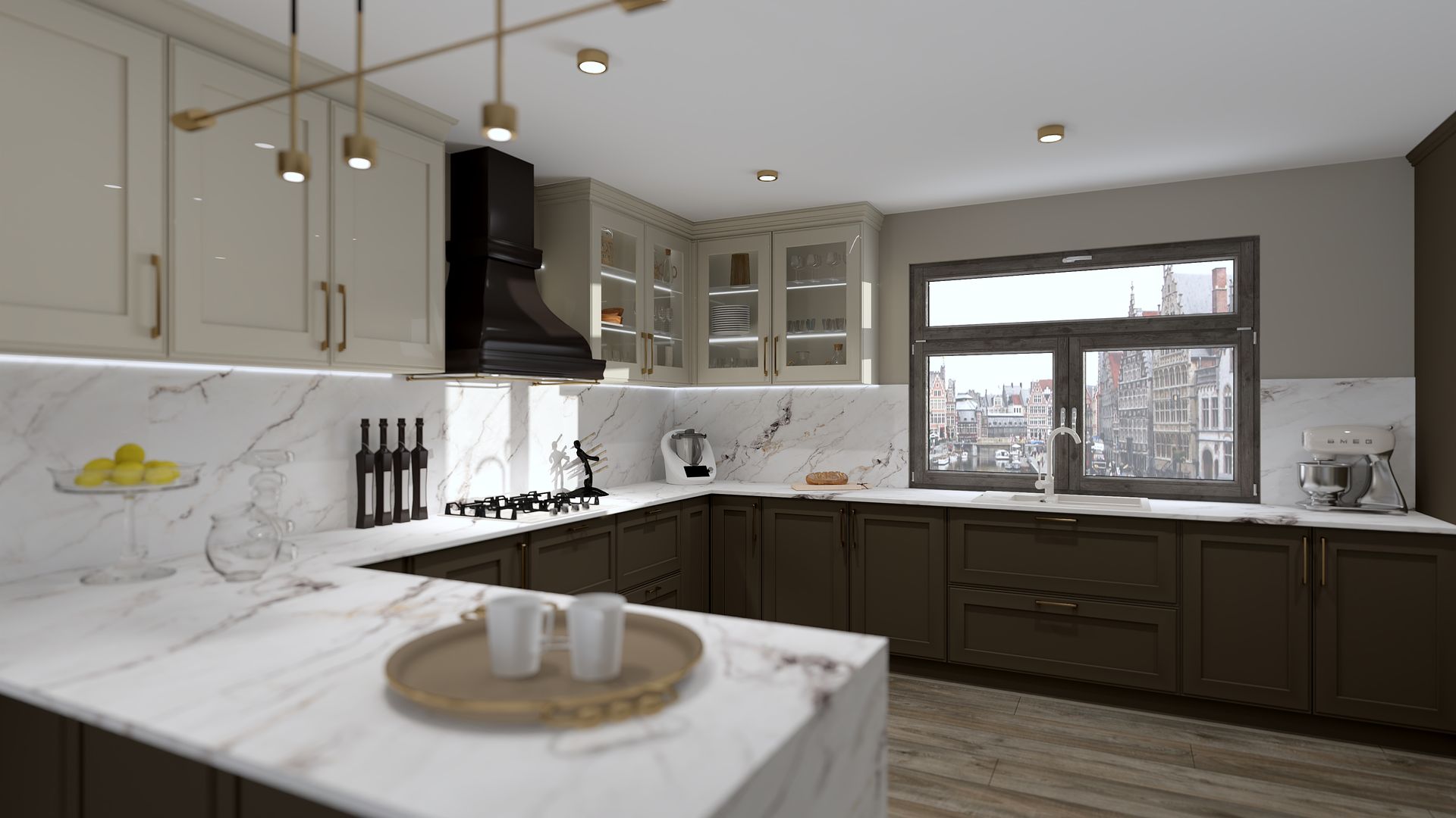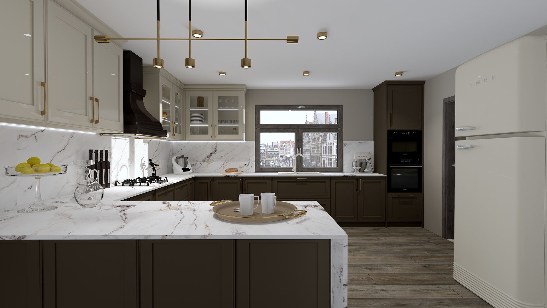 Wnętrze kuchni w stylu prowansalskim i tradycyjnym z czerwonymi meblami i białym blatem 6 zdjęć w projekcie Zobacz projekt