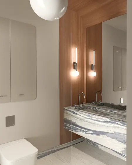~ Wyważona kompozycja – naturalne drewno, szlachetny kamień i matowe wykończenia ~