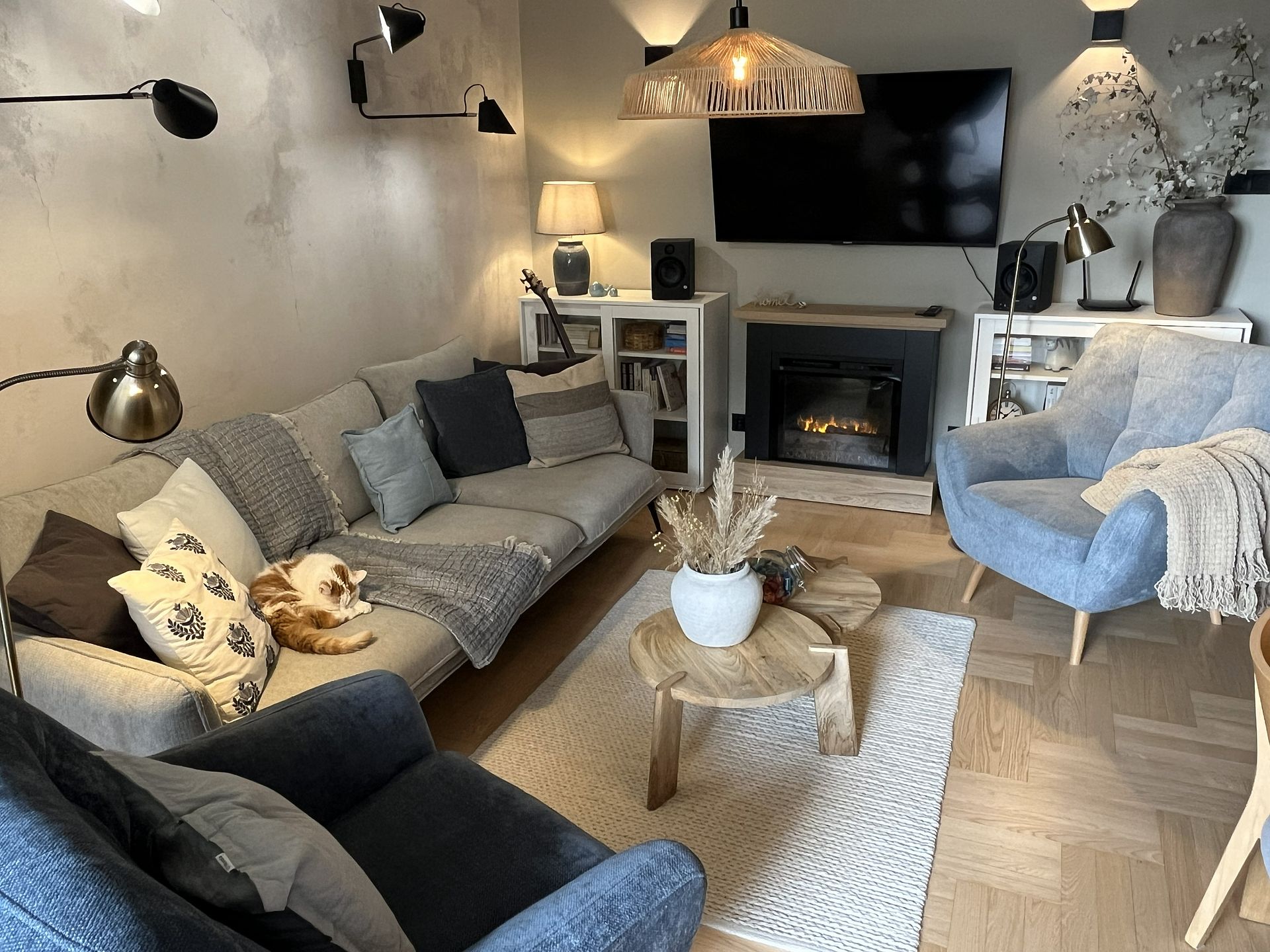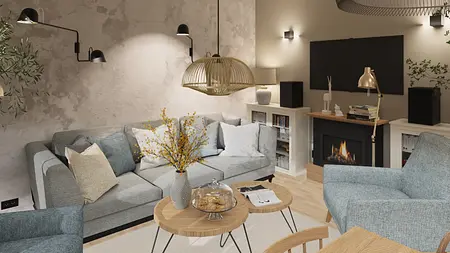 - niemożliwe było zainstalowanie kominka na drewno; zdecydowaliśmy o kominku elektrycznym emitującym ciepło