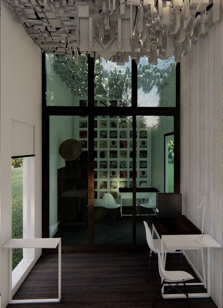 Koncepcja biura z częścią do spotkań z klientami. Opracowanie rysunków technicznych ścianki ruchomej.