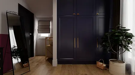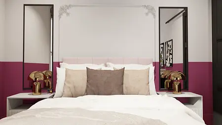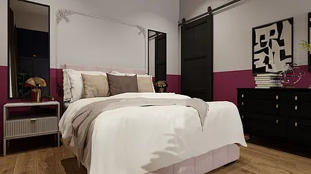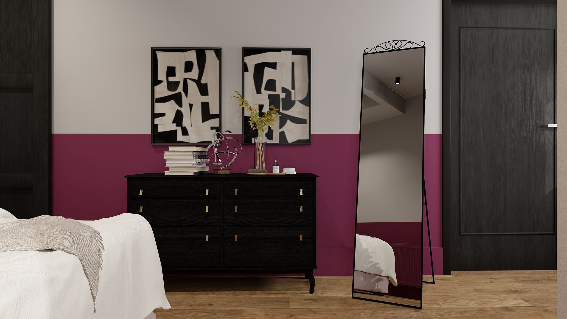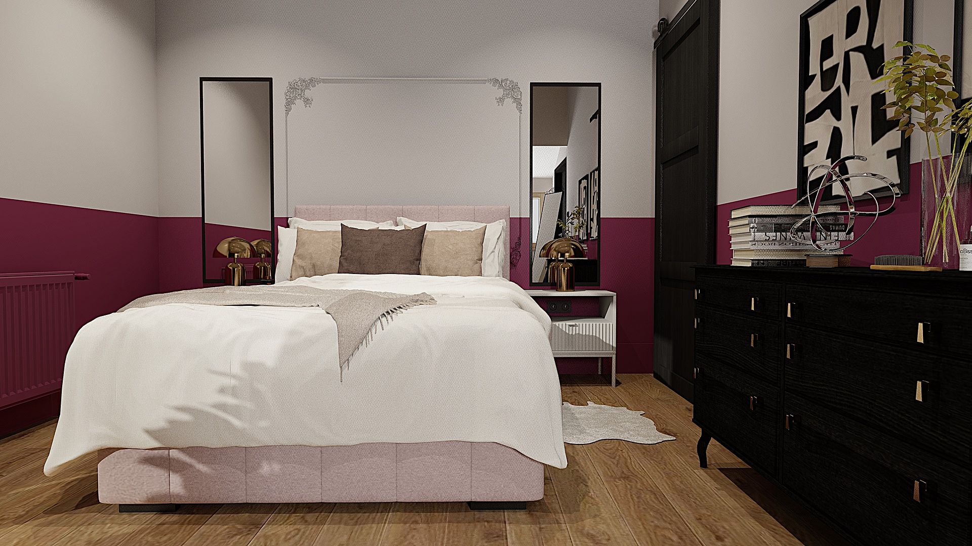 Eklektyczna sypialnia stworzona z myślą o sesjach na social media – połączenie różnych kolorów i stylów nadaje przestrzeni charakteru i przytulności. Mocne akcenty kolorystyczne w połączeniu z subtelnymi neutralnymi elementami tworzą harmonijną, ale efektowną przestrzeń, idealną do relaksu i kreatywnej ekspresji.