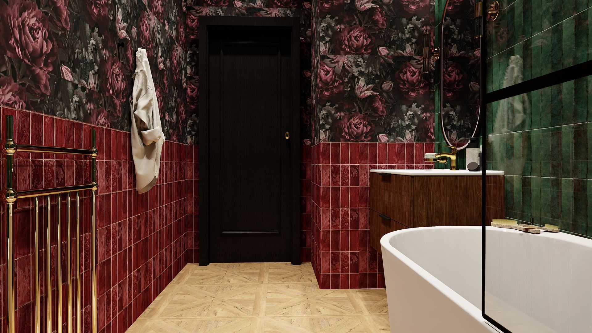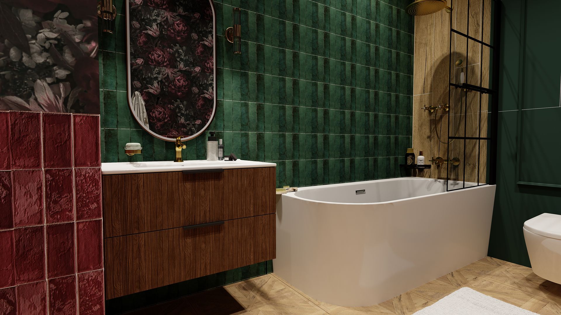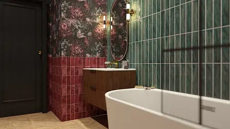 Celem projektu było stworzenie łazienki o kobiecym, eleganckim charakterze, w której kolor, faktura i detale budują spójną oraz wyjątkową przestrzeń. Zastosowano kontrastowe materiały i ciepłe akcenty, nadające wnętrzu indywidualny styl.