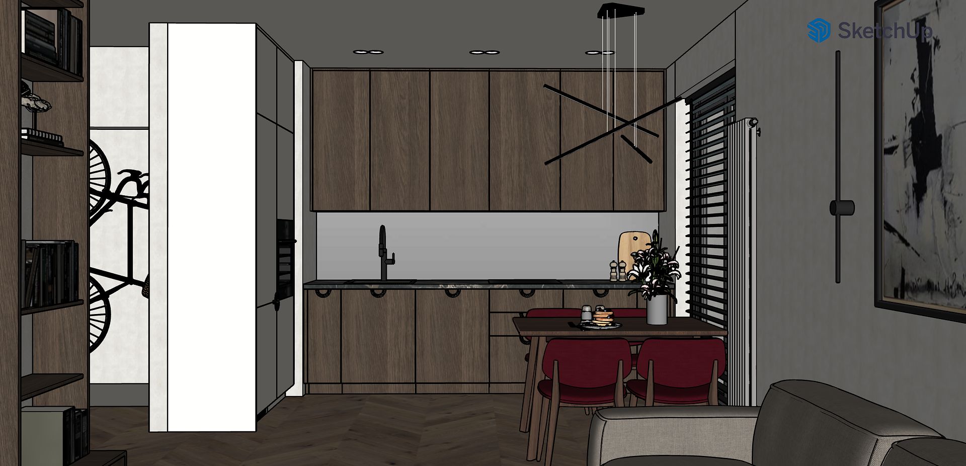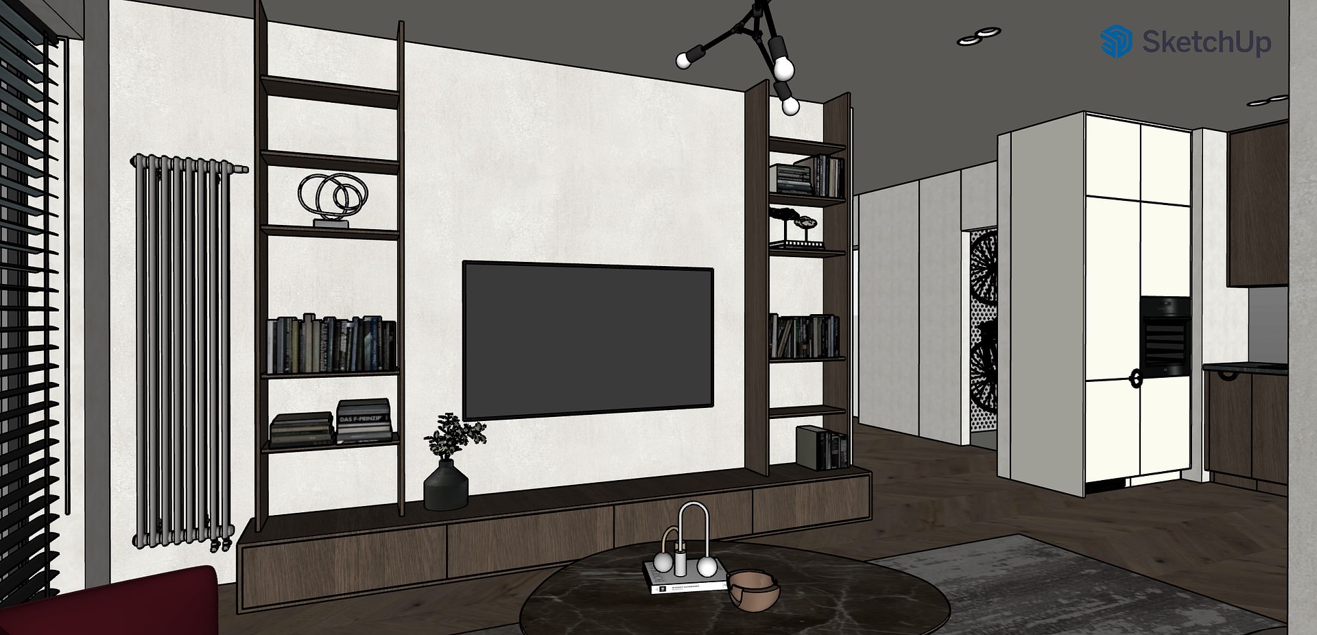 Projekt warszawskiego mieszkania o powierzchni ok. 60 m² został opracowany jako przykład prostych, oszczędnych wizualizacji, które skupiają się na funkcji, proporcjach i klimacie wnętrza, bez generowania zbędnych kosztów po stronie klienta.