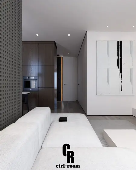 Nowoczesne, spokojne wnętrze zaprojektowane z myślą o codziennym komforcie i funkcjonalności. Strefa dzienna łączy salon z aneksem kuchennym, a całość oparta jest na jasnej, neutralnej kolorystyce, naturalnym drewnie oraz prostych, minimalistycznych formach. Projekt skupia się na ergonomii, czytelnym układzie funkcjonalnym oraz spójnych detalach zabudów meblowych i oświetlenia, tworząc elegancką i ponadczasową przestrzeń do życia.