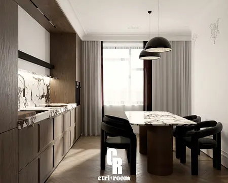 Wnętrze zostało zaprojektowane z naciskiem na proporcje, światło oraz wysoką jakość materiałów – naturalne drewno, jasne powierzchnie i subtelne sztukaterie tworzą spokojną, elegancką przestrzeń do codziennego życia.