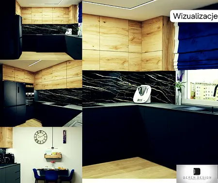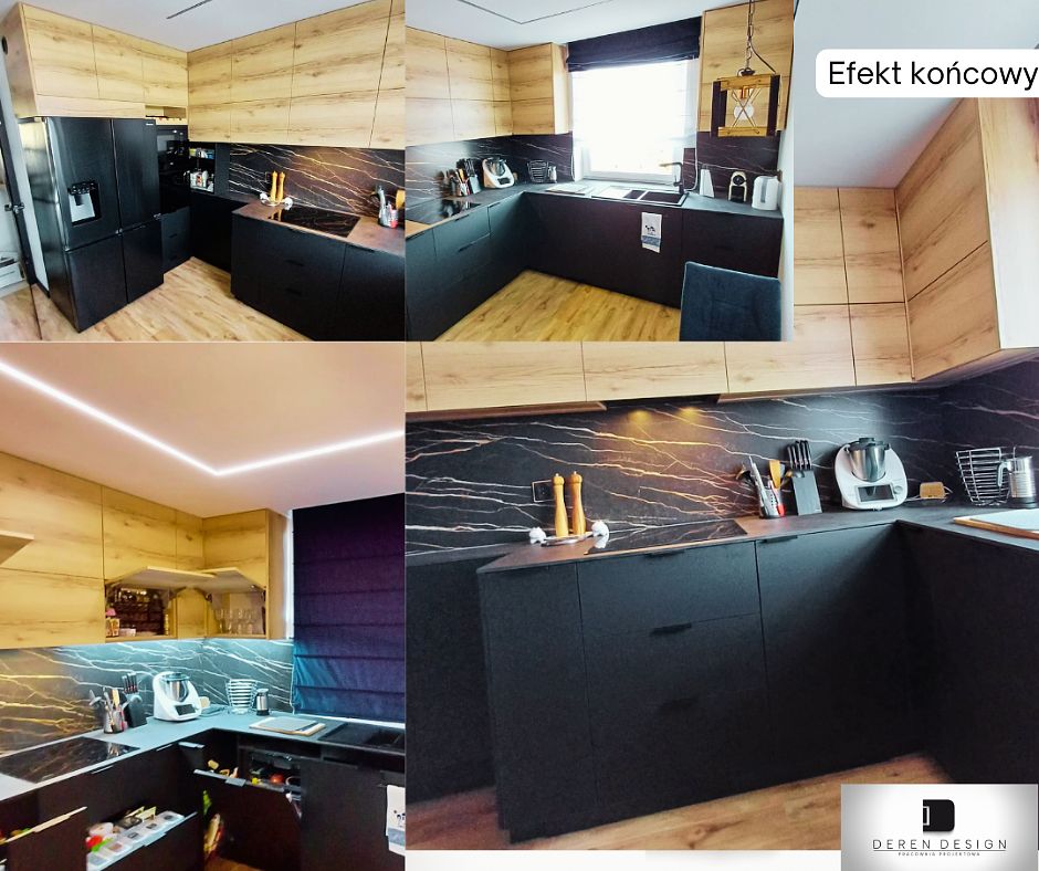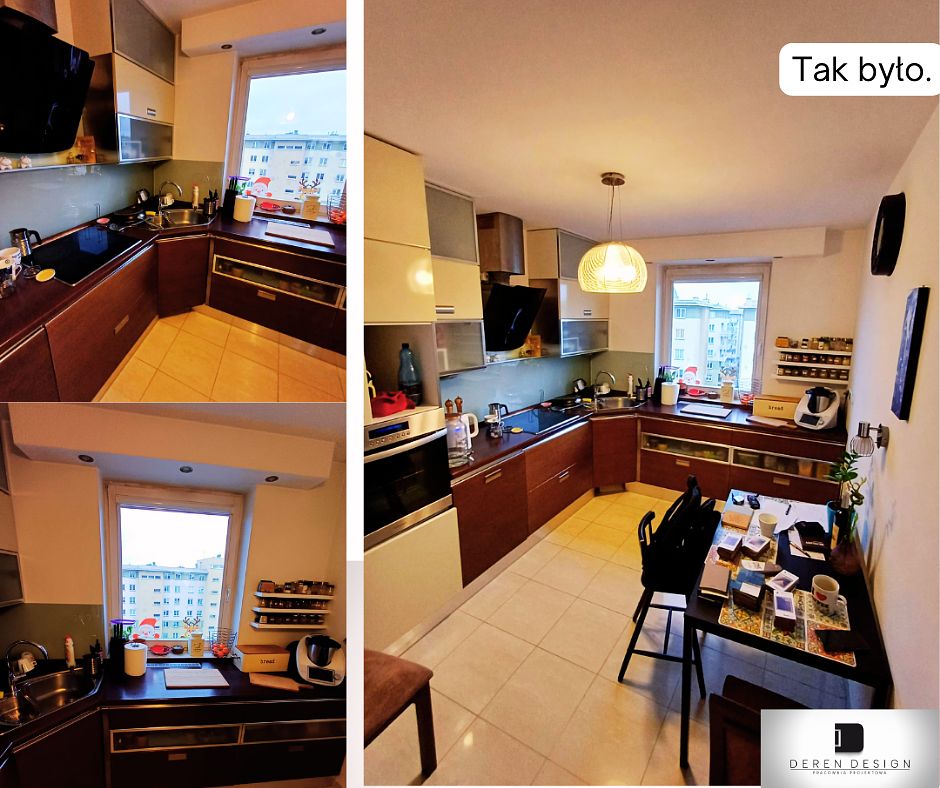 Totalna rewolucja. Wymieniono: - podłogę - zabudowę meblową - blaty - materiał pomiędzy szafkami kuchennymi - elektrykę (gniazda i kontakty) i oświetlenie - meble mobilne - (krzesła, stół) - całe AGD (zmywarka, lodówka, mikrofala, piekarnik, płyta indukcyjna, zlewozmywak) - roletę - baterię zlewozmywakową - z filtrem