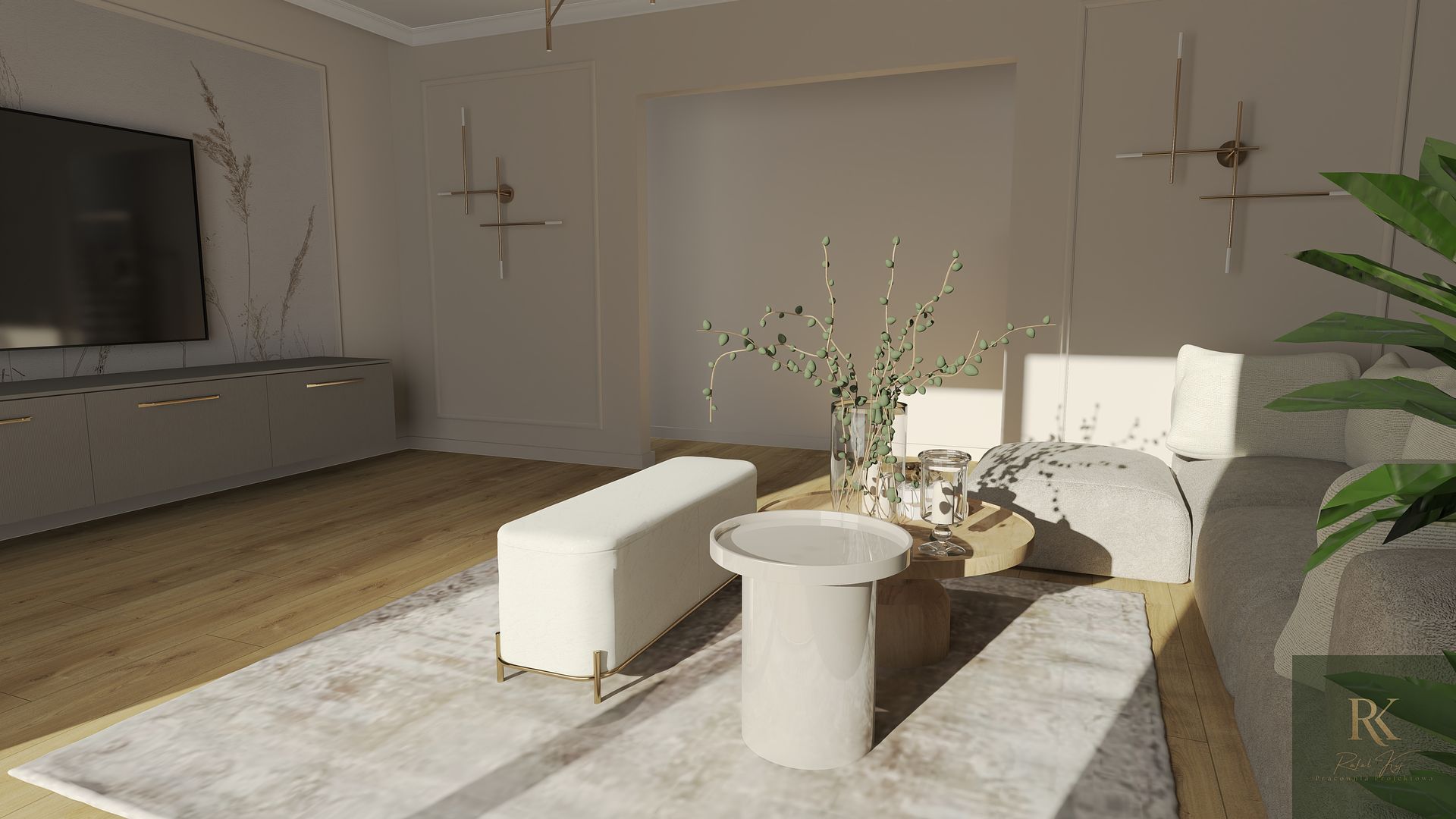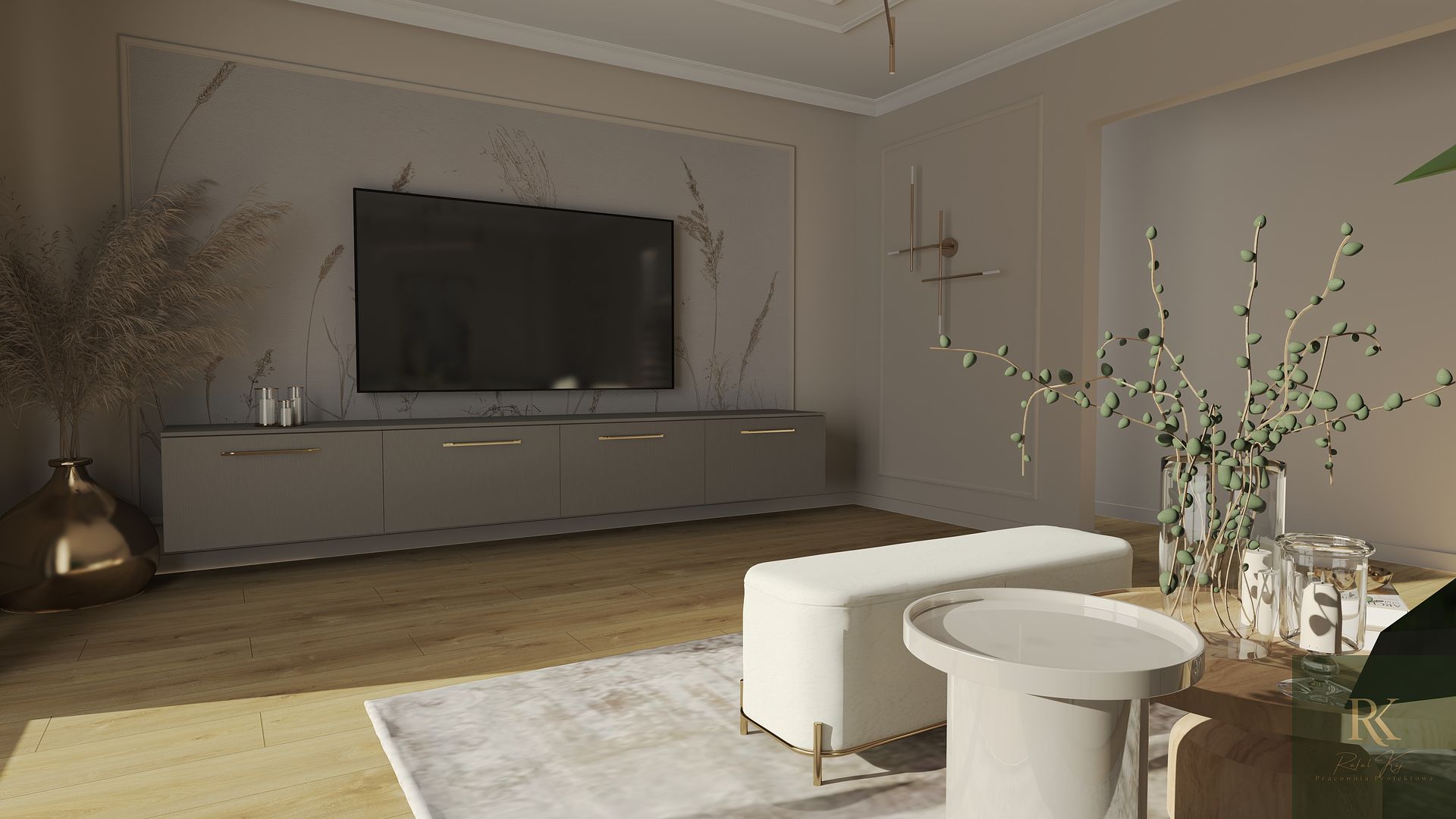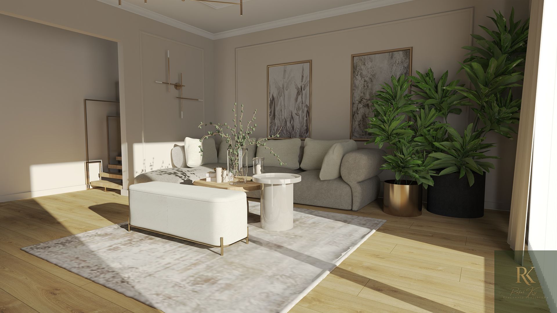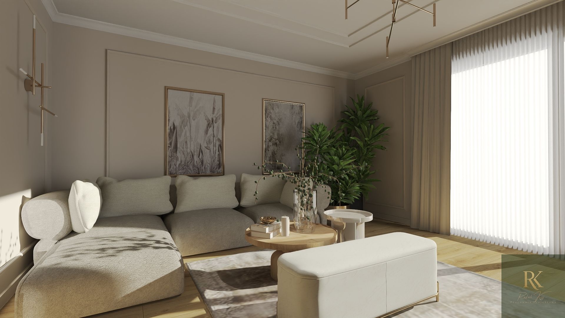 Subtelna paleta beży, miękkie formy i złote akcenty – to połączenie klasyki z nowoczesnością, które tworzy wnętrze pełne harmonii i elegancji.
