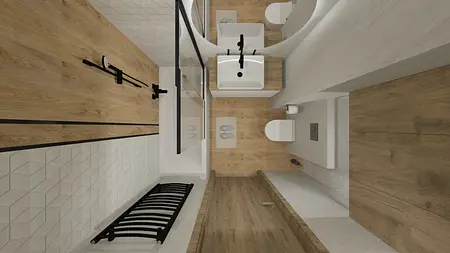 Wnętrze łazienki z minimalistycznym designem i jasnymi meblami. 4 zdjęć w projekcie Zobacz projekt