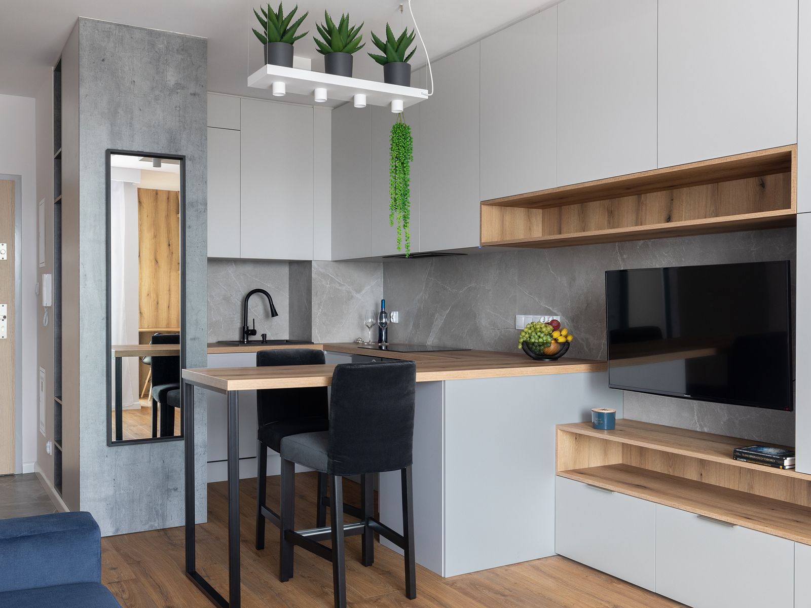 Malutka kawalerka ale zmieściło się wszystko co niezbędne dla wygodnej egzystencji.