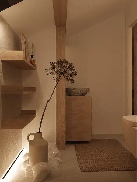 Mała łazienka gościnna na poddaszu. Duży skos, drewniana belka- trudny projekt. Jak wyszło? Oceńcie sami ;)
