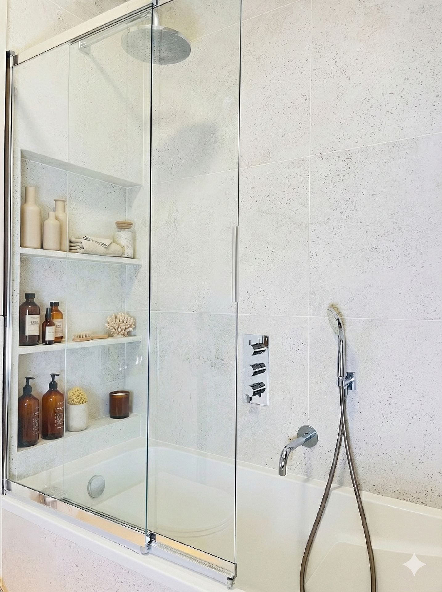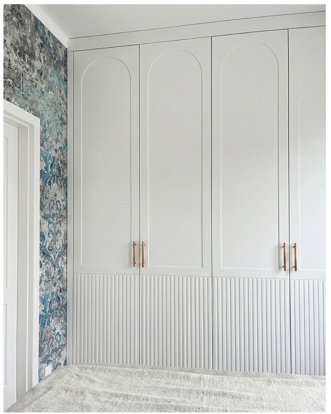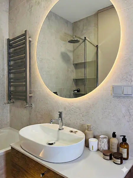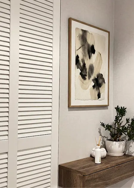 Postawiłam na prostotę i elegancję. Ściany w jasnym, chłodnym odcieniu doskonale współgrają z drewnianą, klasyczną podłogą w jodełkę. Smukła, minimalistyczna konsola oraz delikatny obraz w ramie dodają lekkości i wprowadzają wyrafinowany klimat już od wejścia. Nowoczesne oświetlenie sufitowe na szynoprzewodach zapewnia funkcjonalność i przyjemną atmosferę.