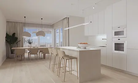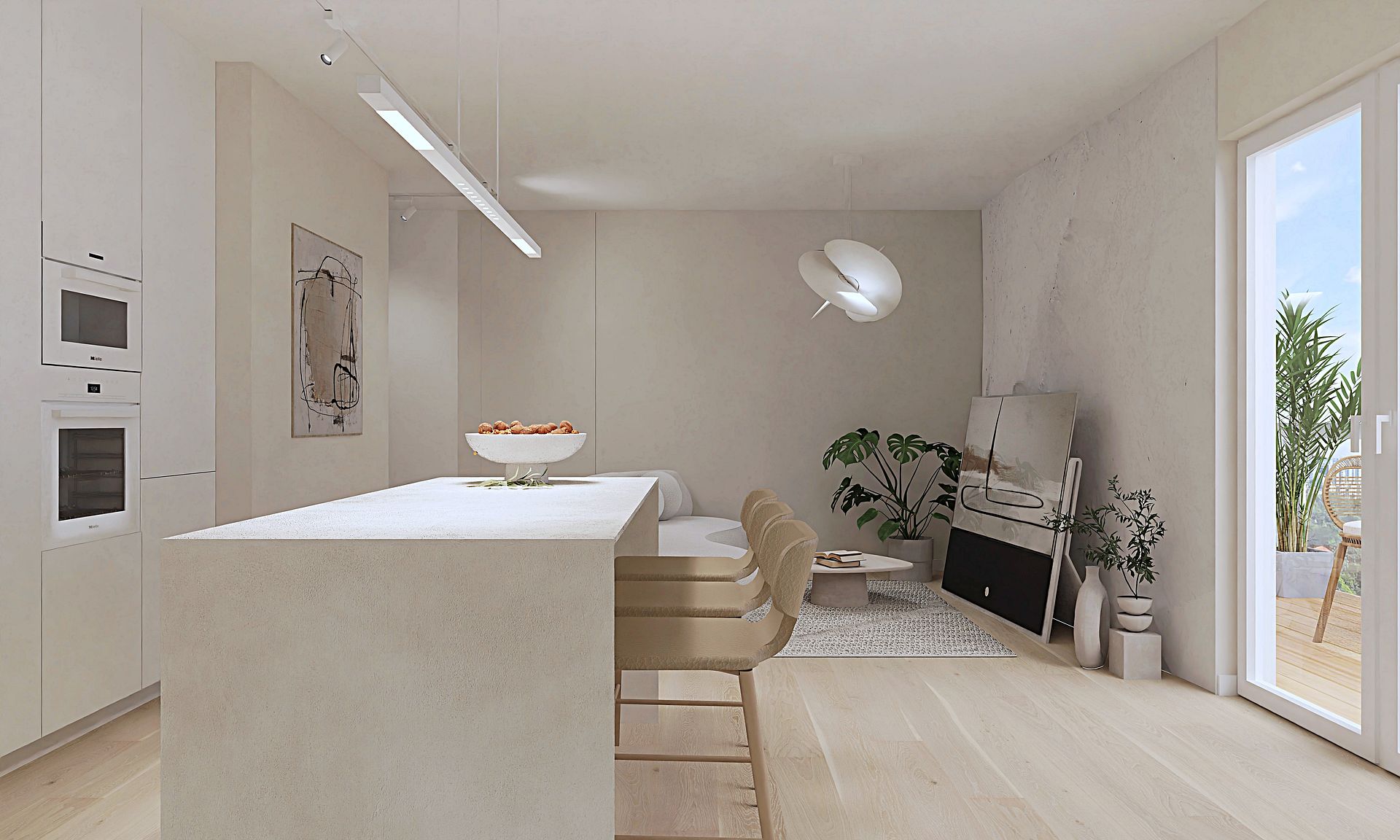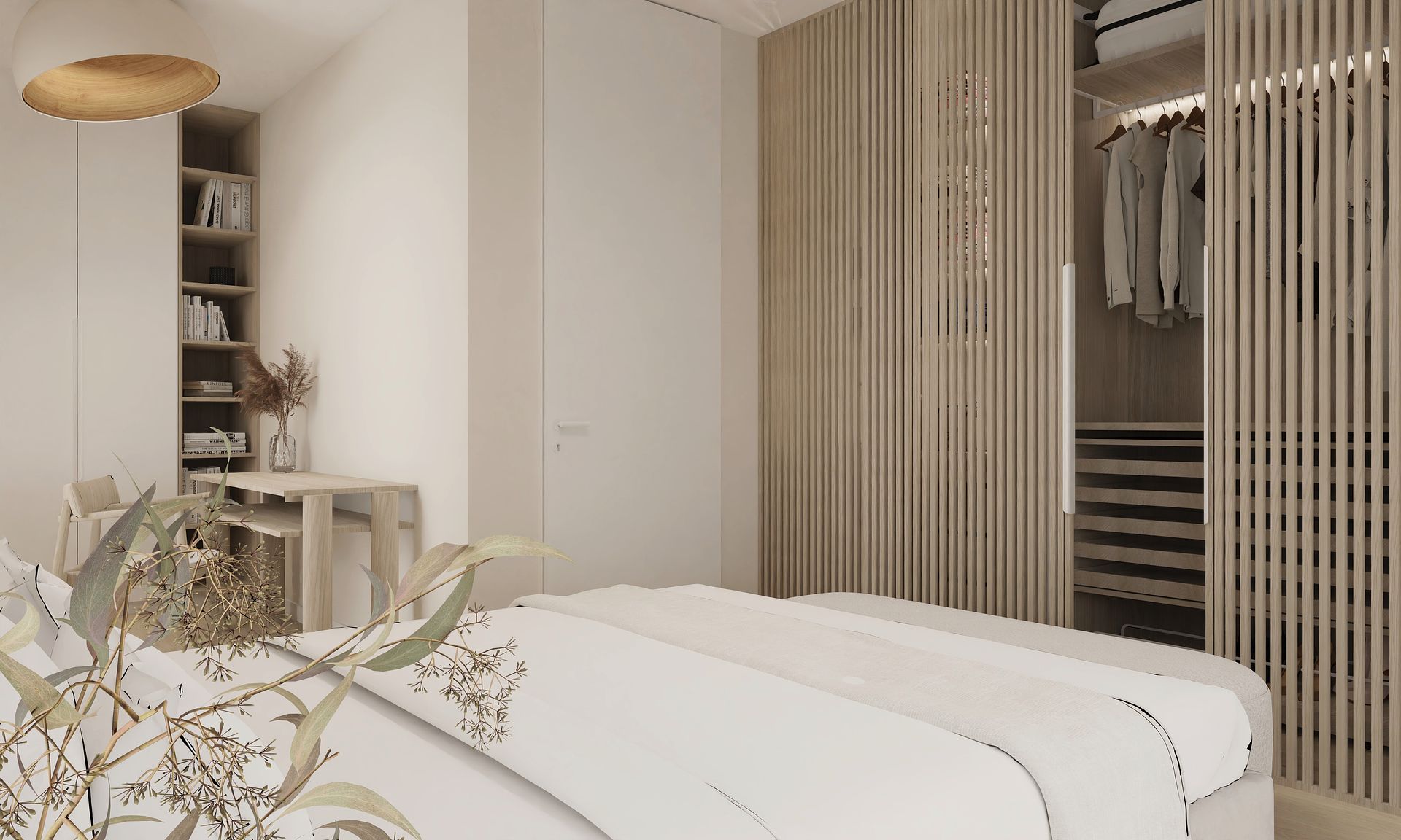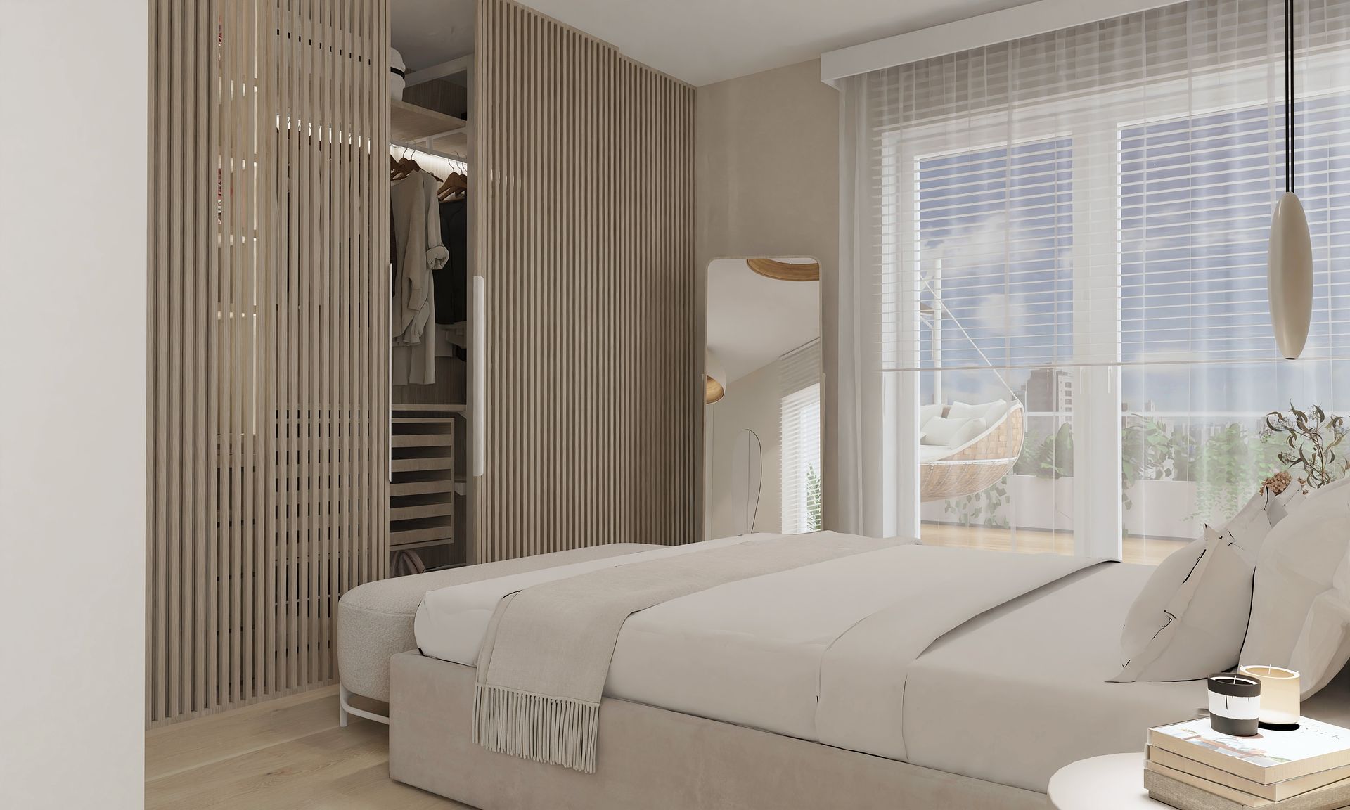 Projekt wnętrz 88-metrowego mieszkania został opracowany w duchu jasnego, naturalnego minimalizmu inspirowanego stylem japandi. Kluczowe było stworzenie przestrzeni, która sprzyja codziennemu funkcjonowaniu mieszkańców, a jednocześnie wprowadza atmosferę spokoju i równowagi.
