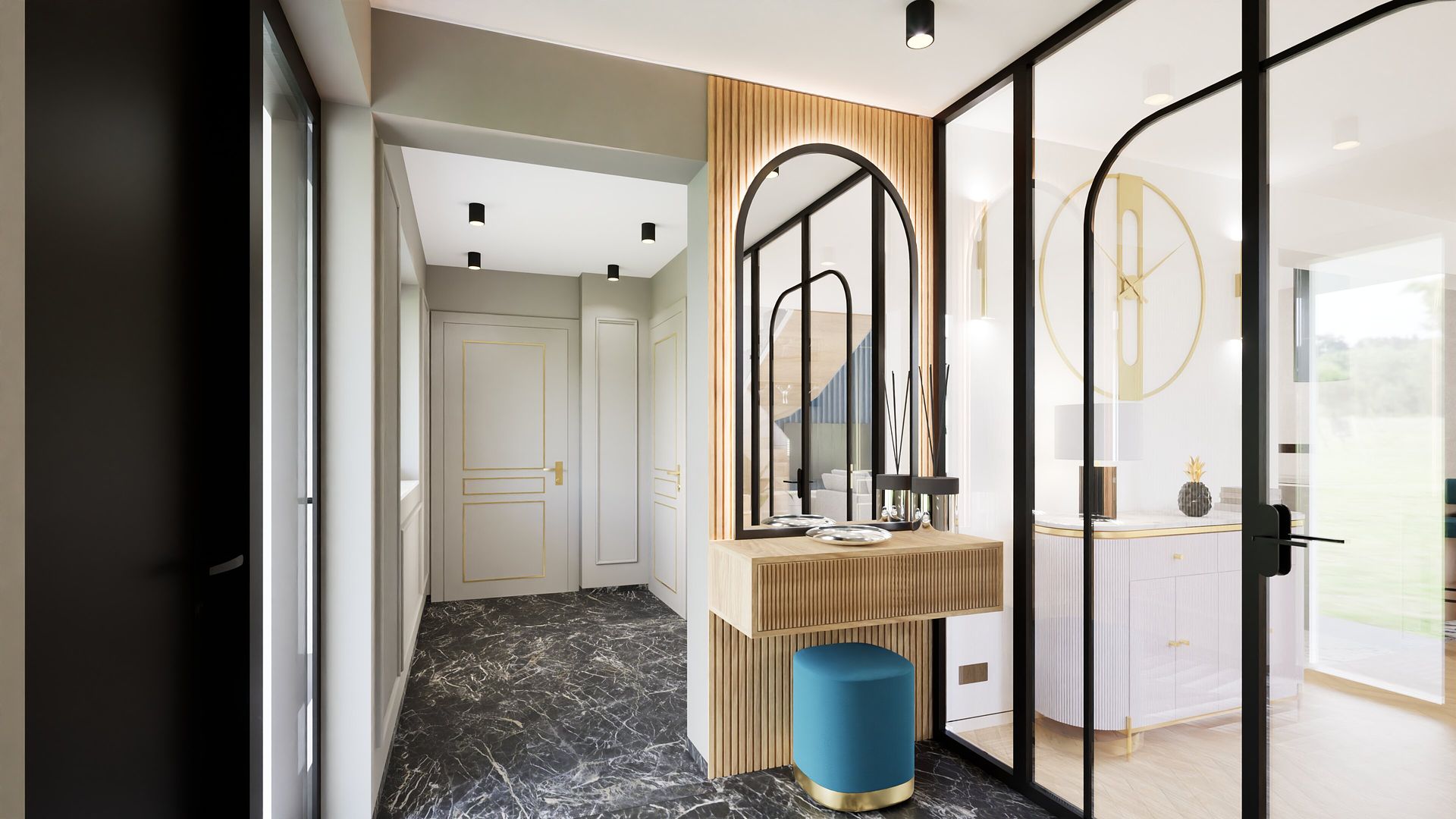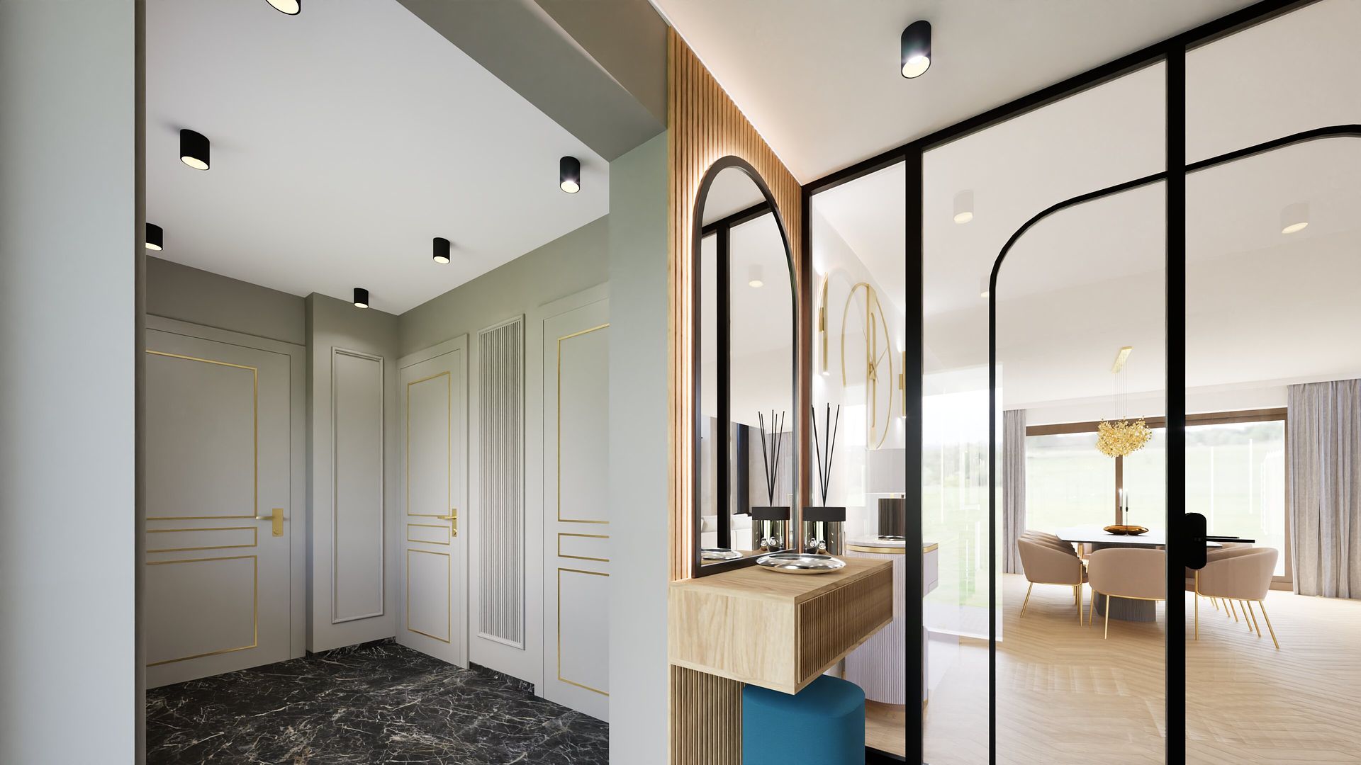 Projekt wnętrza domu o powierzchni użytkowej ok 160m2