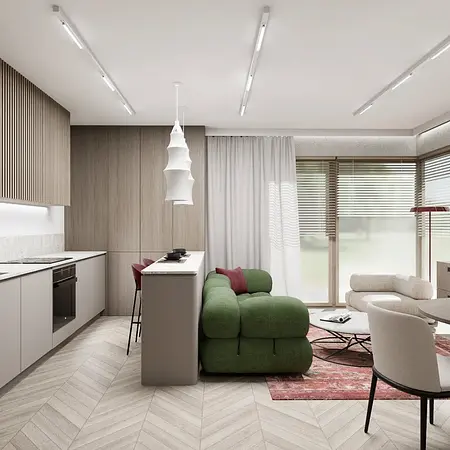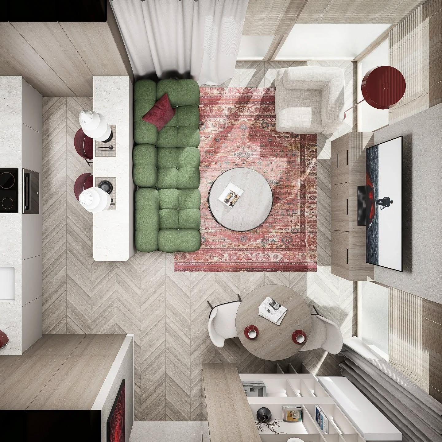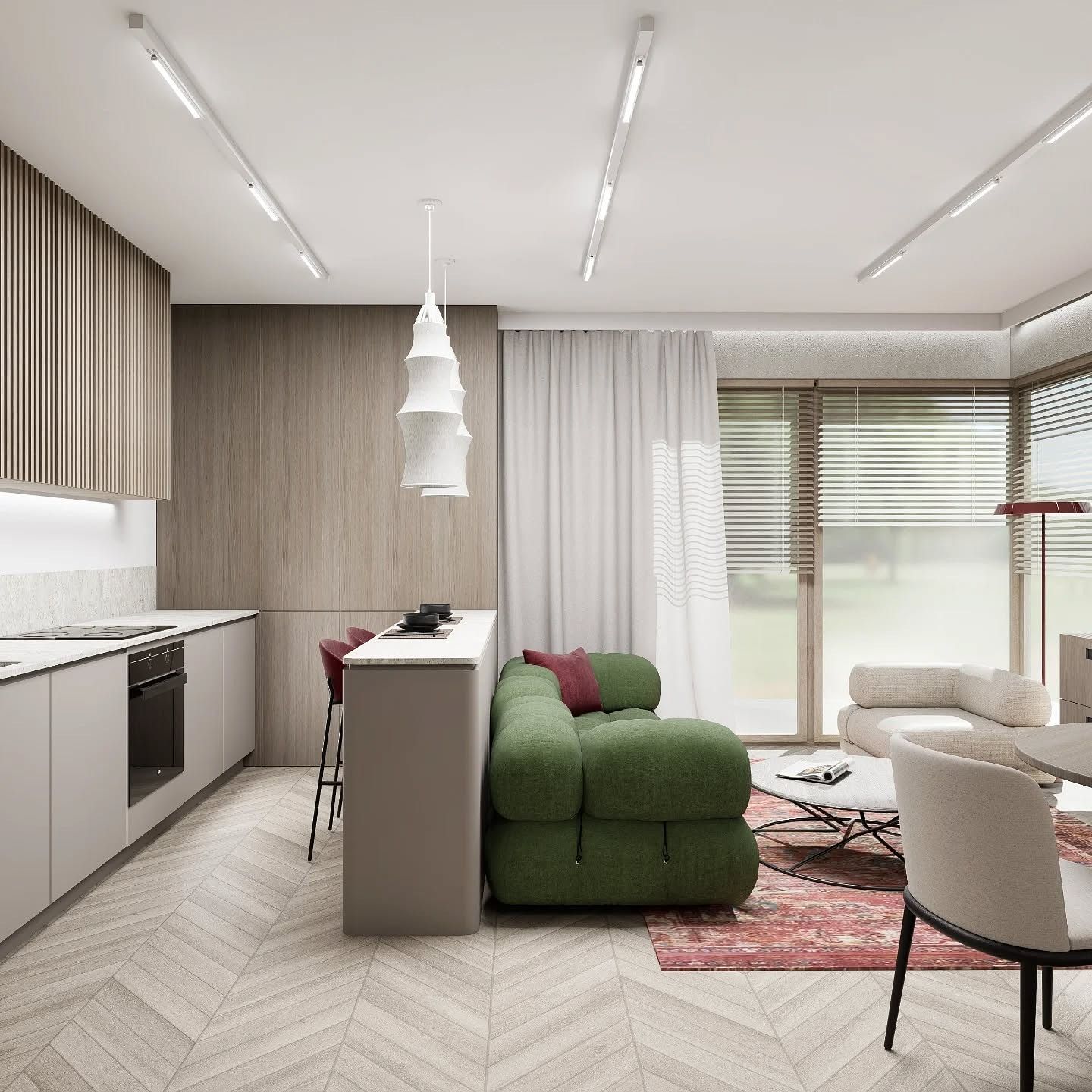 Projekt otwartego salonu w mieszkaniu w Kielcach