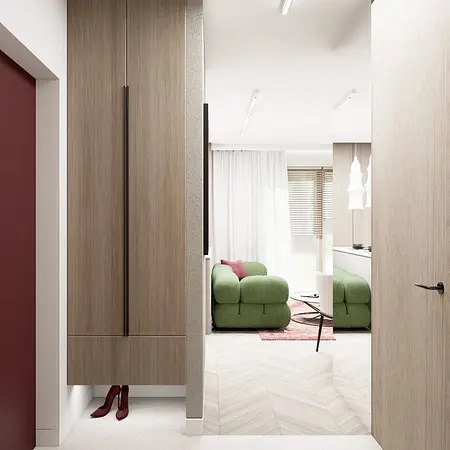 Przedpokój w stylu minimaluxe z beżowymi meblami i dodatkami w soft minimalizm. 3 zdjęć w projekcie Zobacz projekt