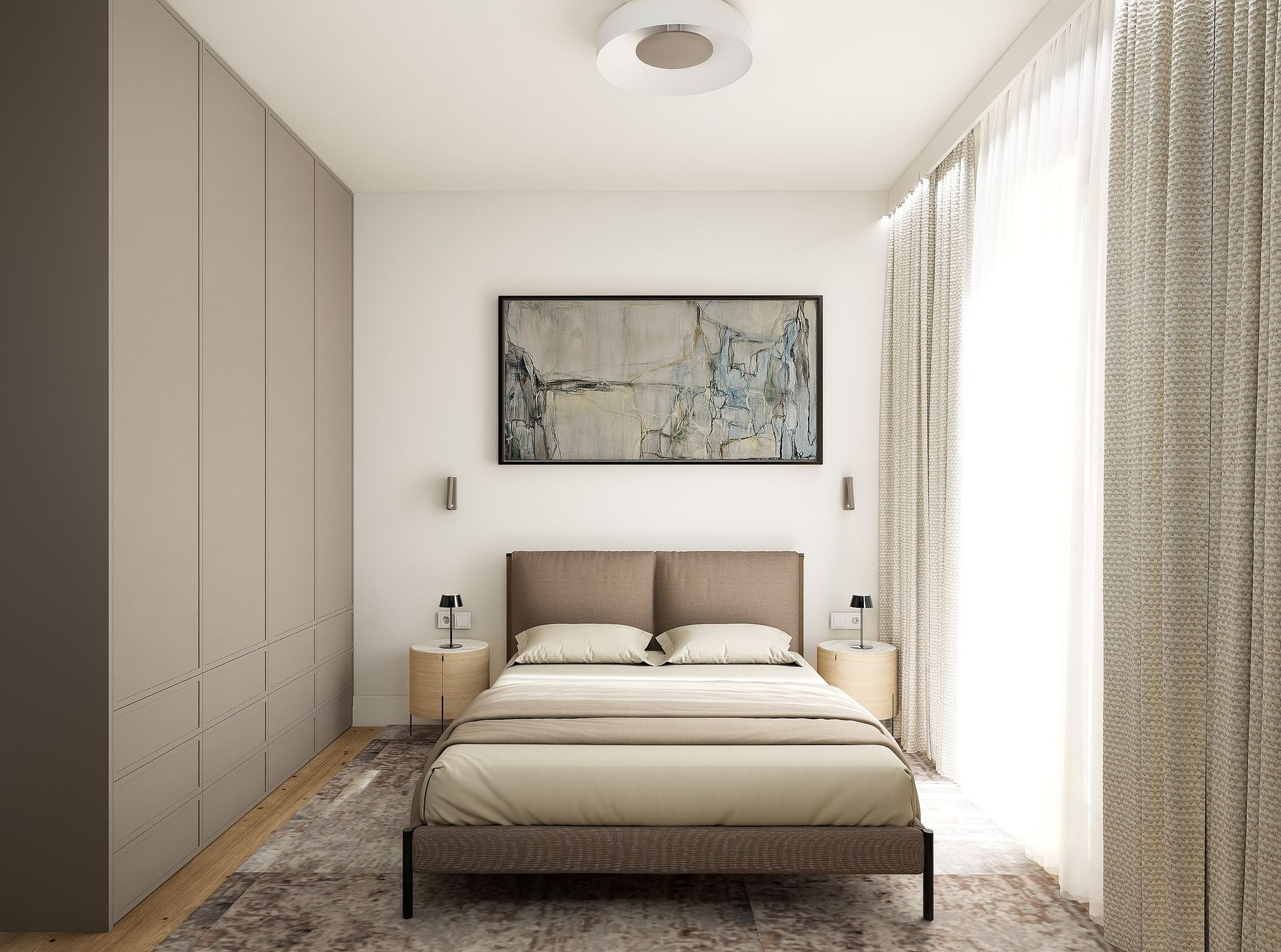Sypialnia w stylu japandi z minimalistycznym wystrojem, soft minimalizm, quiet luxury. 1 zdjęć w projekcie Zobacz projekt
