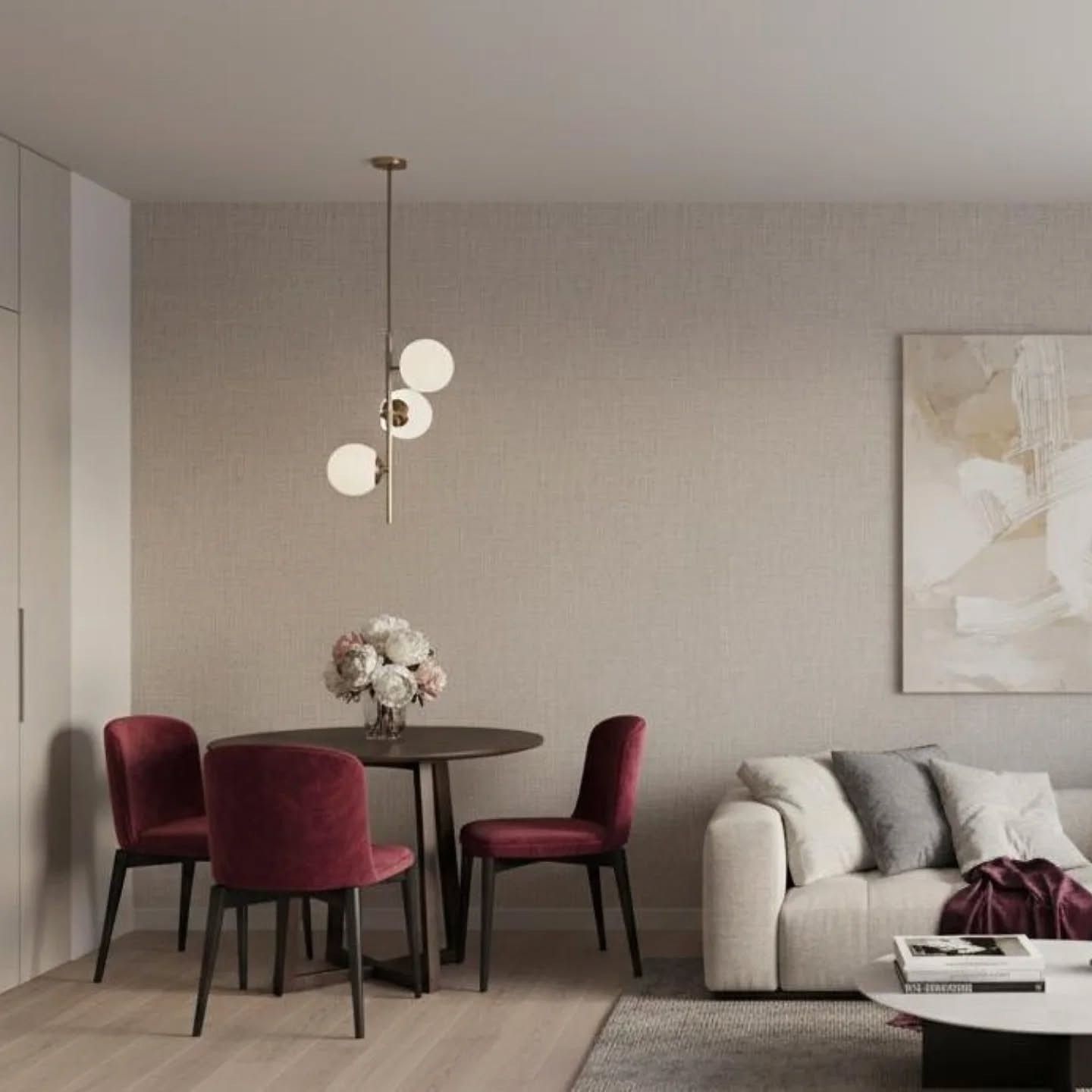 Wnętrze jadalni w stylu minimaluxe z jasnym stołem i krzesłami. 3 zdjęć w projekcie Zobacz projekt