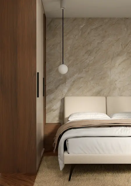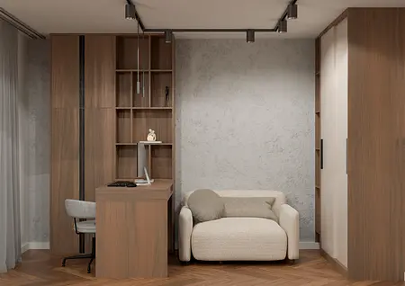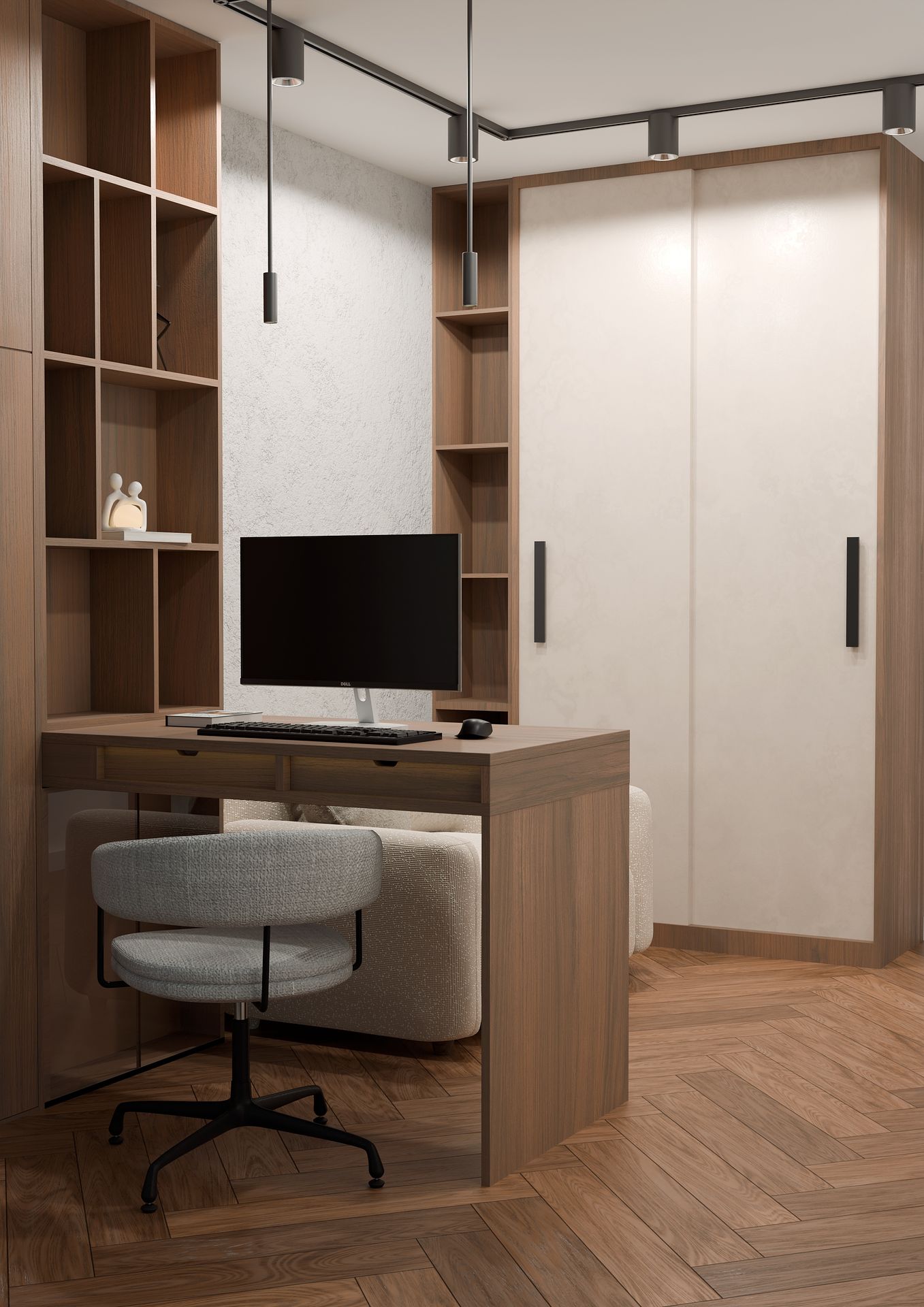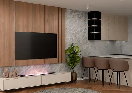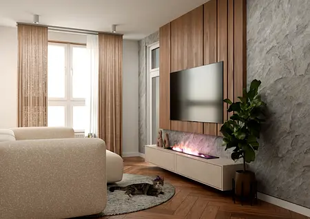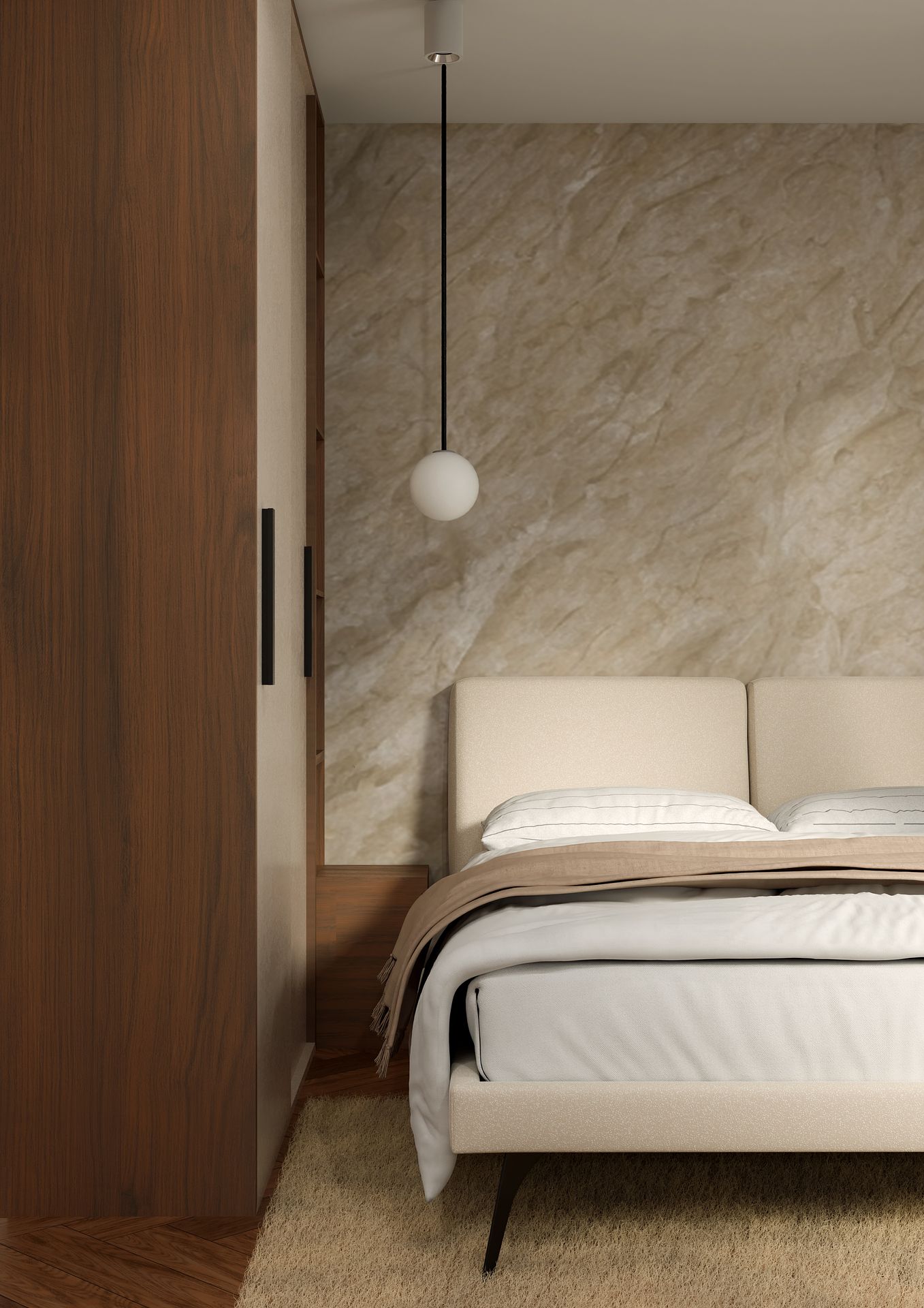 Ciepłe światło, naturalne tekstury, spokojna paleta barw — przestrzeń, w której ożywa przytulność.