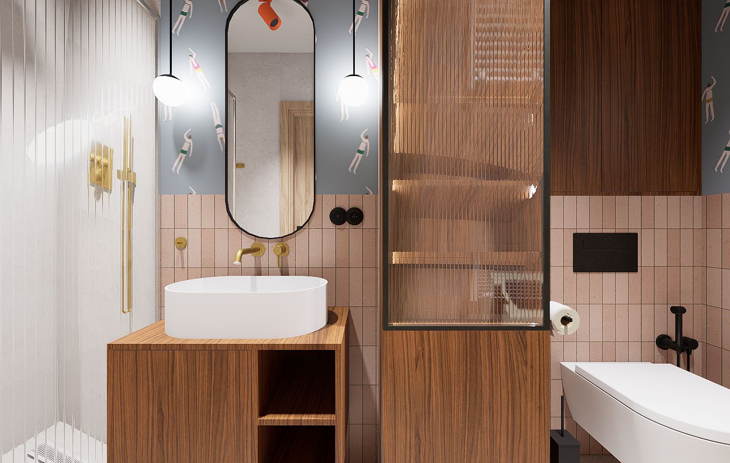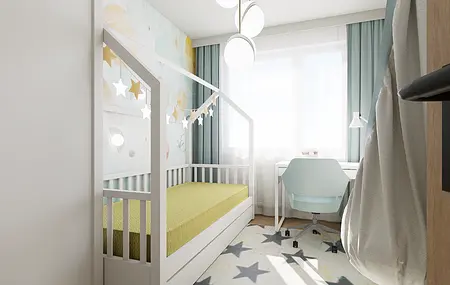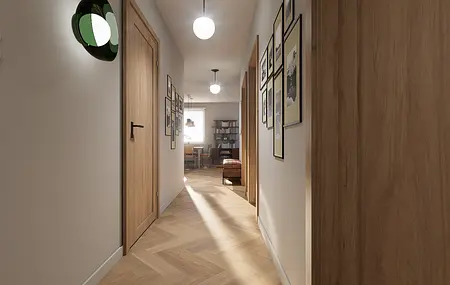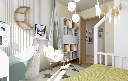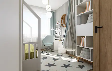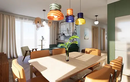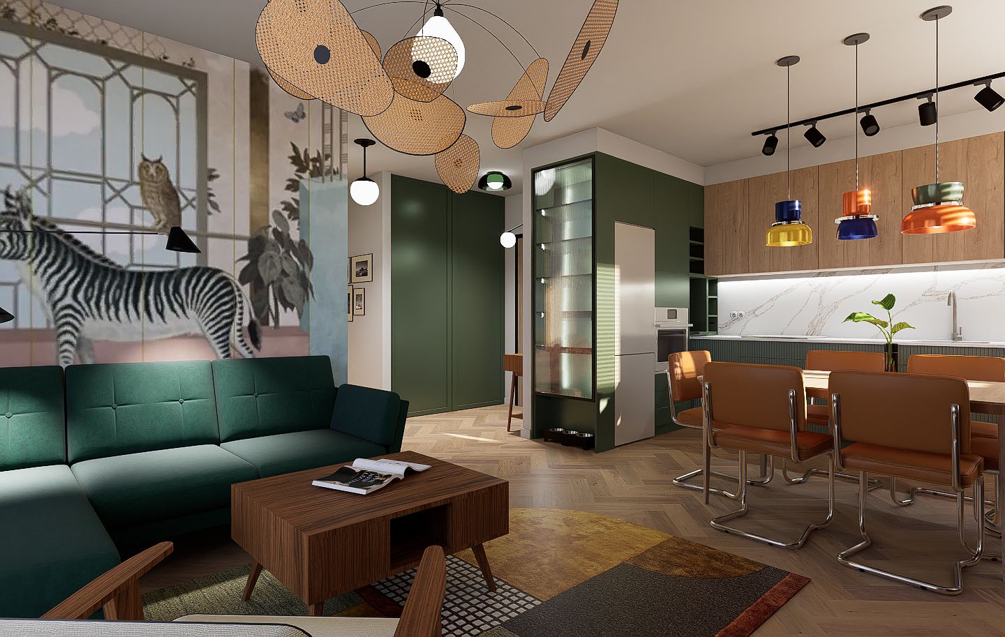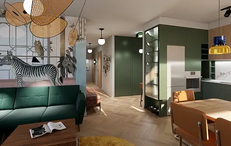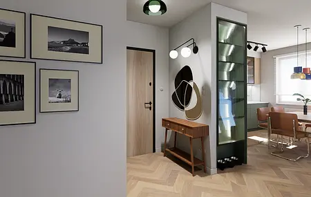 Mieszkanie mimo, że znajduje się na nowoczesnym osiedlu finalnie oddaje klimat bliski sercu jego domowników. W ścisłej współpracy z Inwestorami zaprojektowałam wygodne mieszkanie dla 4 os rodziny i kota, w stylu mid century modern.