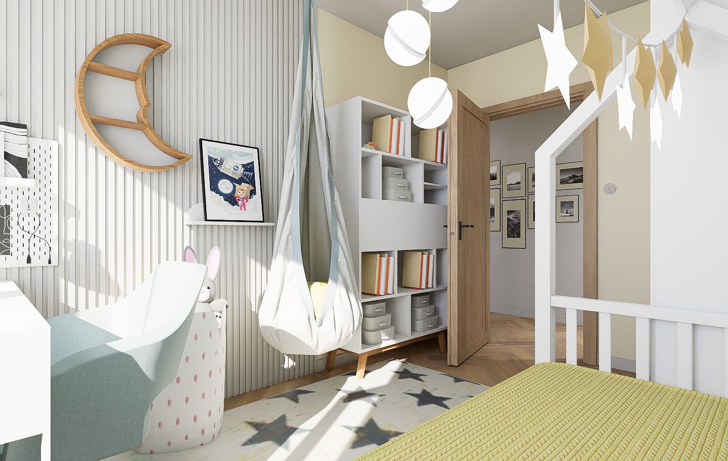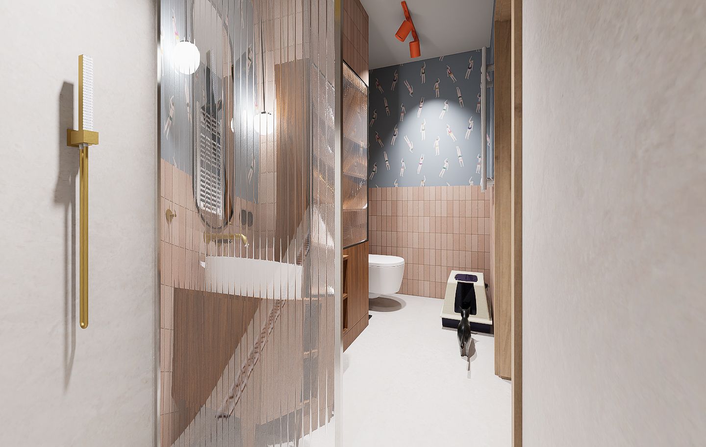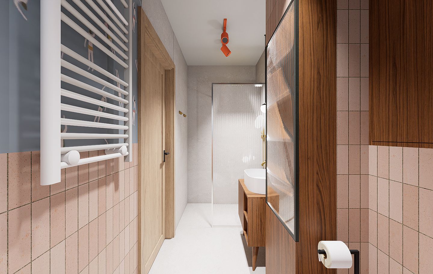 Mieszkanie mimo, że znajduje się na nowoczesnym osiedlu finalnie oddaje klimat bliski sercu jego domowników. W ścisłej współpracy z Inwestorami zaprojektowałam wygodne mieszkanie dla 4 os rodziny i kota, w stylu mid century modern.