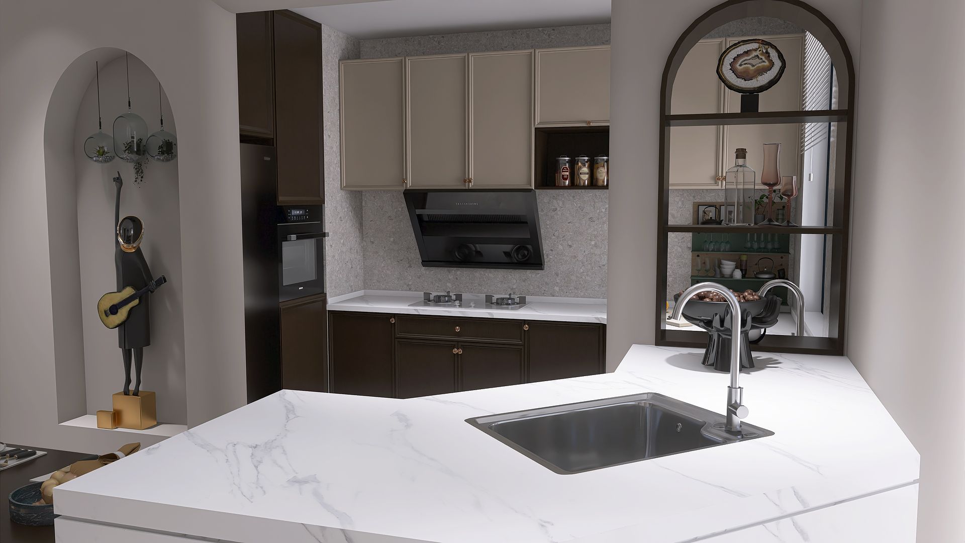 Zapytanie dotyczyło estetycznej i wygodnej kuchni do mieszkania o powierzchni 68 m², w stylu modern oraz jadalni i salonu w tym stylu.