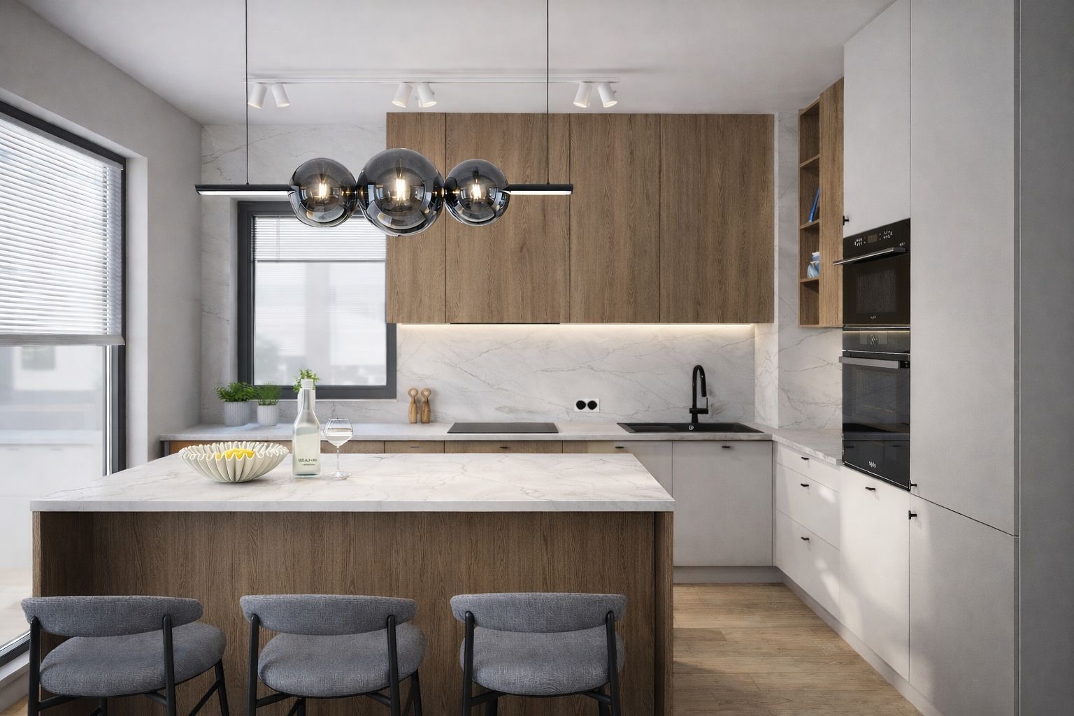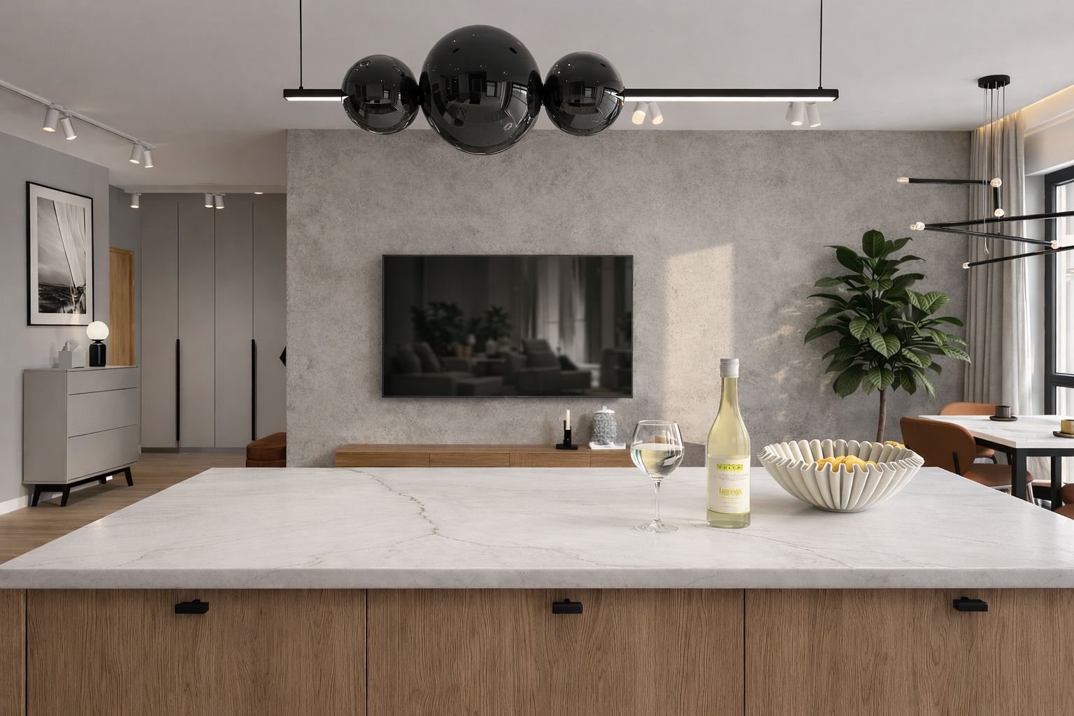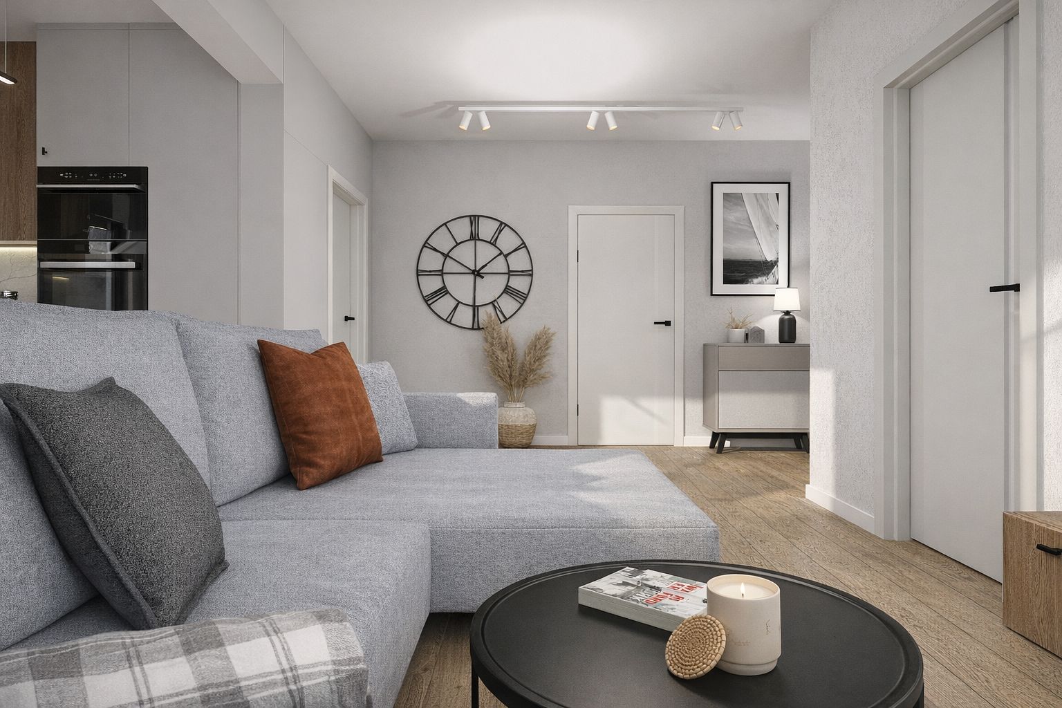 Projekt mieszkania dla mężczyzny. Inwestor chciał by było jasno ponadczasowo z delikatnymi akcentami.