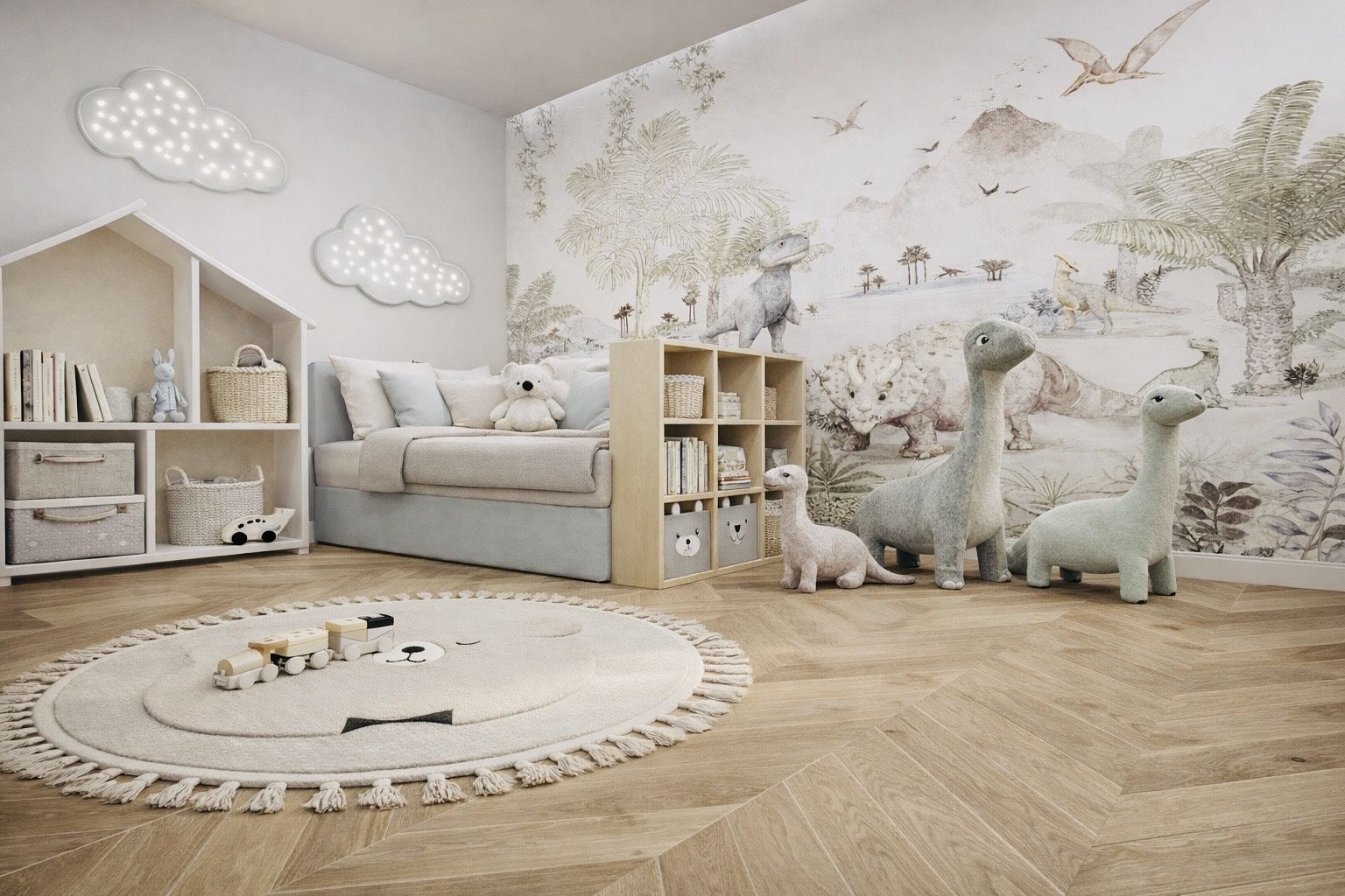 Projekt pokoju dziecięcego, małego fana dinozaurów.