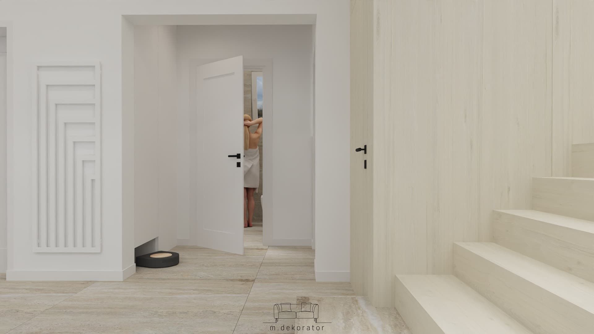 Przedpokój w stylu japandi, minimalistycznym i skandynawskim z jasnymi ścianami i drewnianą podłogą 16 zdjęć w projekcie Zobacz projekt
